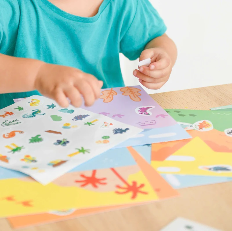 Que ce soit à la maison ou lors d’un long voyage, ce pack d’activités composé de 100 autocollants et de 6 cartes permettra à votre enfant de s’amuser et de se divertir. Le pack a été spécialement adapté aux tout-petits, améliorant leur motricité fine, encourageant les enfants à répéter le geste plusieurs fois et favorisant la concentration et l’attention. L’enfant place les autocollants sur les cartes en suivant les couleurs. Petit à petit, les images sont colorées ! Une fois complétées, les cartes forment une belle collection de petites images assorties.