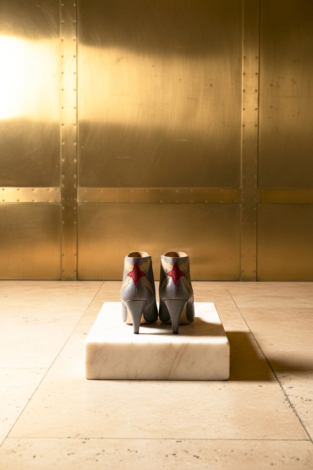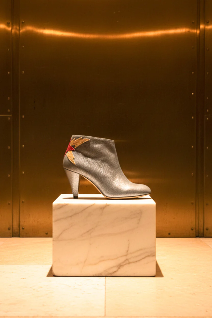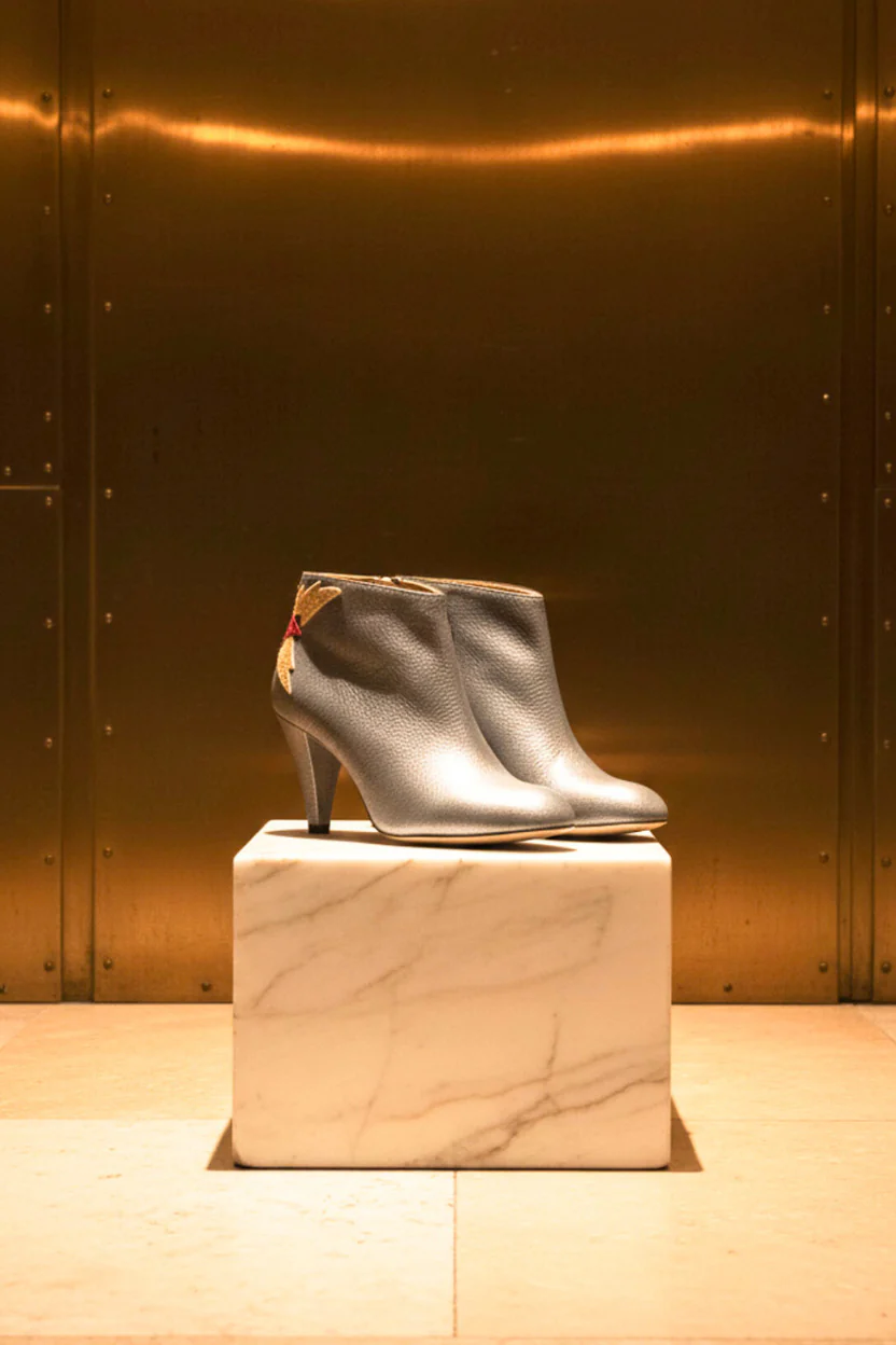 • Hauteur de Talon : 7 cm• Nubuck imprimé métallisé gris, Détail glitter fin champagne et rouge• Semelle intérieure et extérieure Cuir• Fabrication : Espagne• L’Altman chausse à la pointure Note : La peausserie peut présenter des irrégularités.