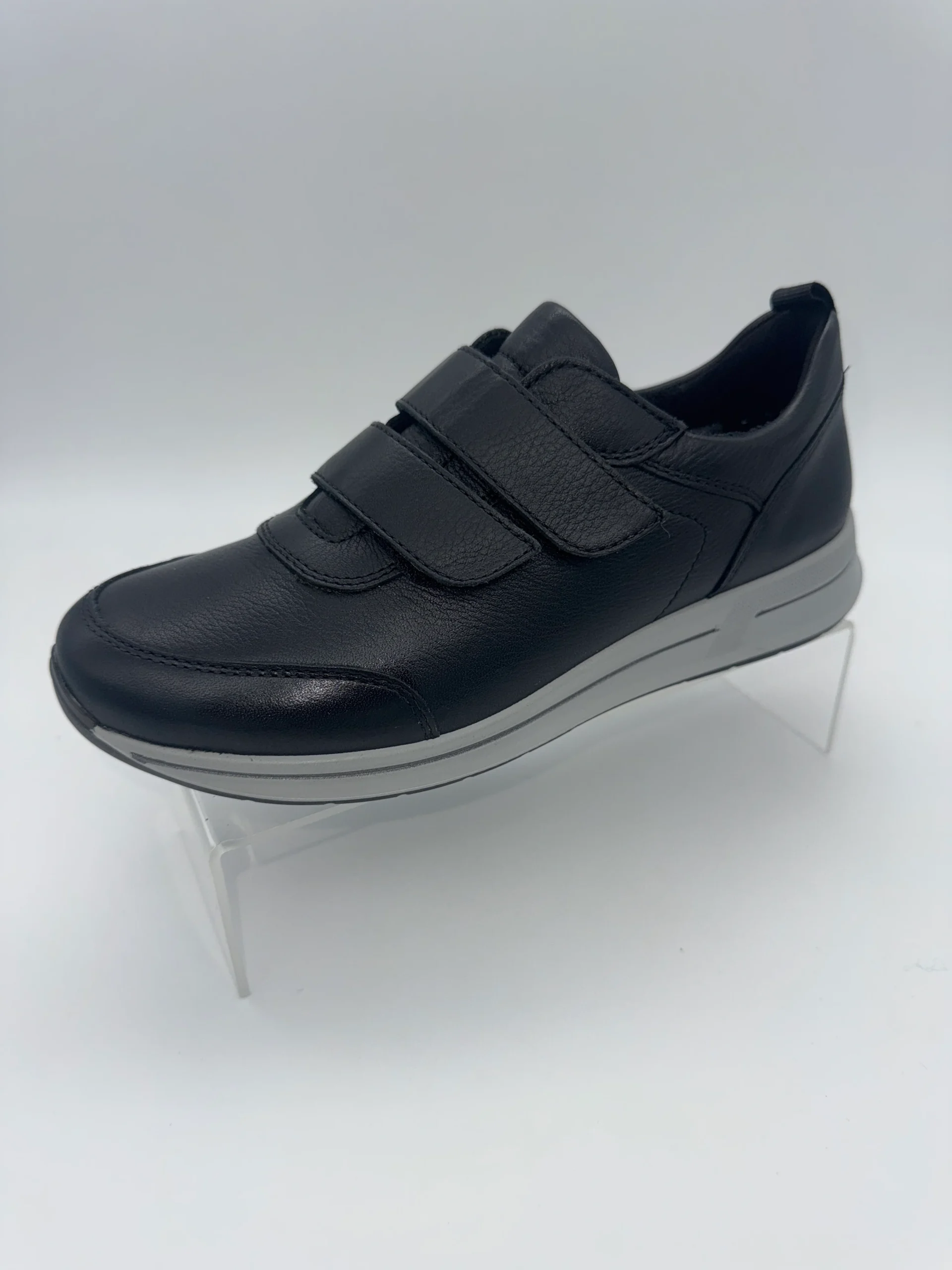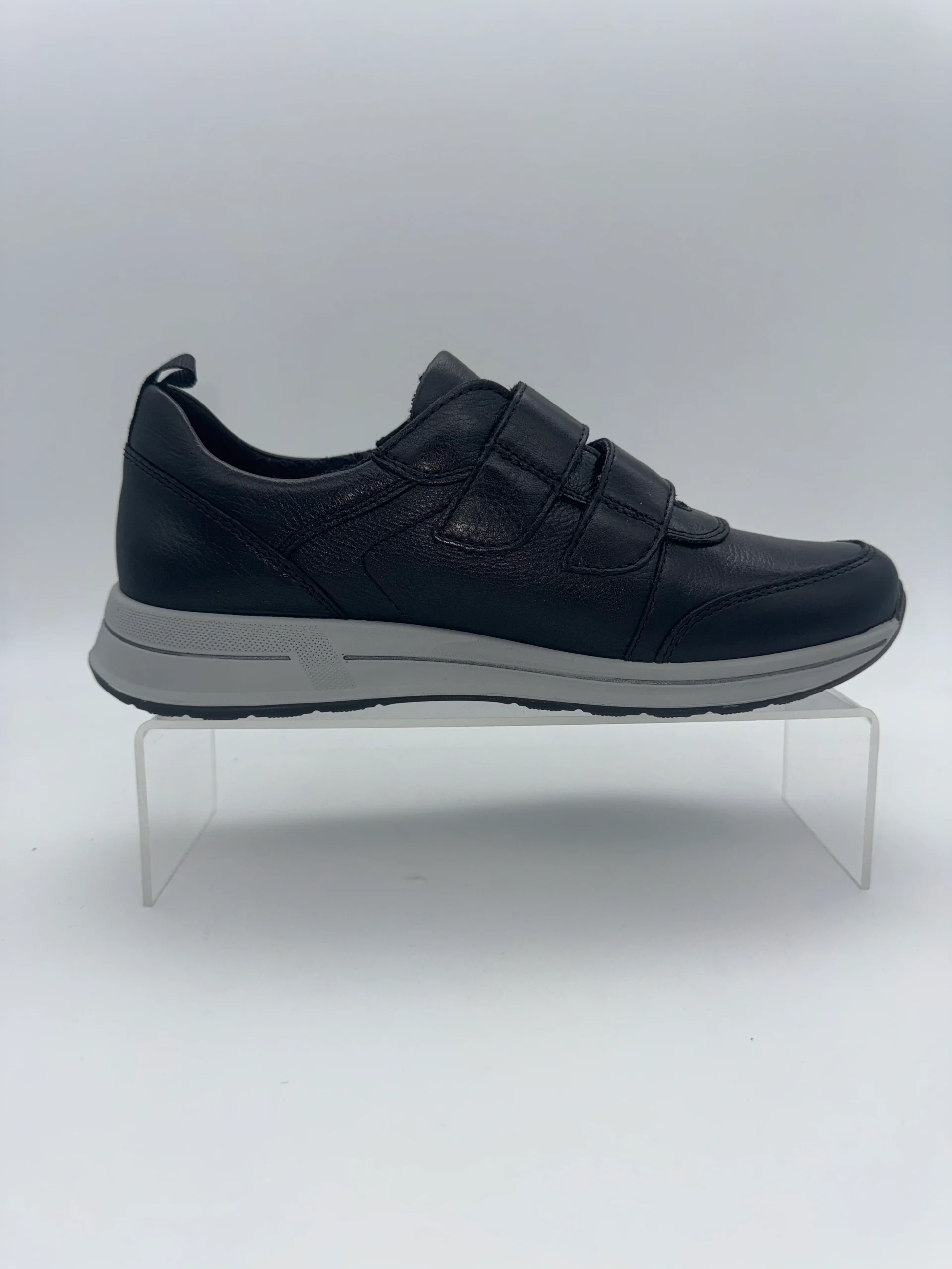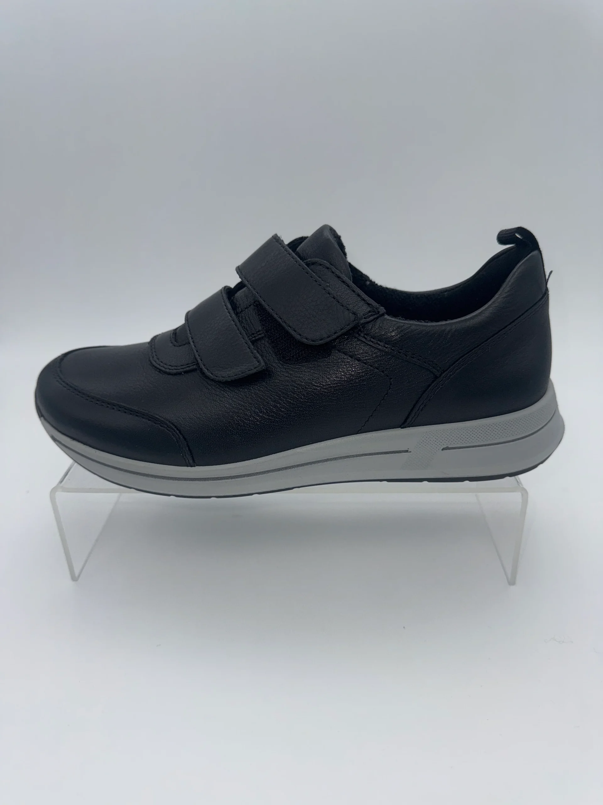 Marque : ARA Modèle : Baskets Saisonnalité : Toutes saisons Talon : 2,5 cm Type de chausse : Largeur H Couleur : Noir Matière extérieure : Cuir Matière intérieure : Textile bambou Semelle intérieure : Eponge Bambou / amovible Semelle extérieure : autre Fermeture : deux velcros