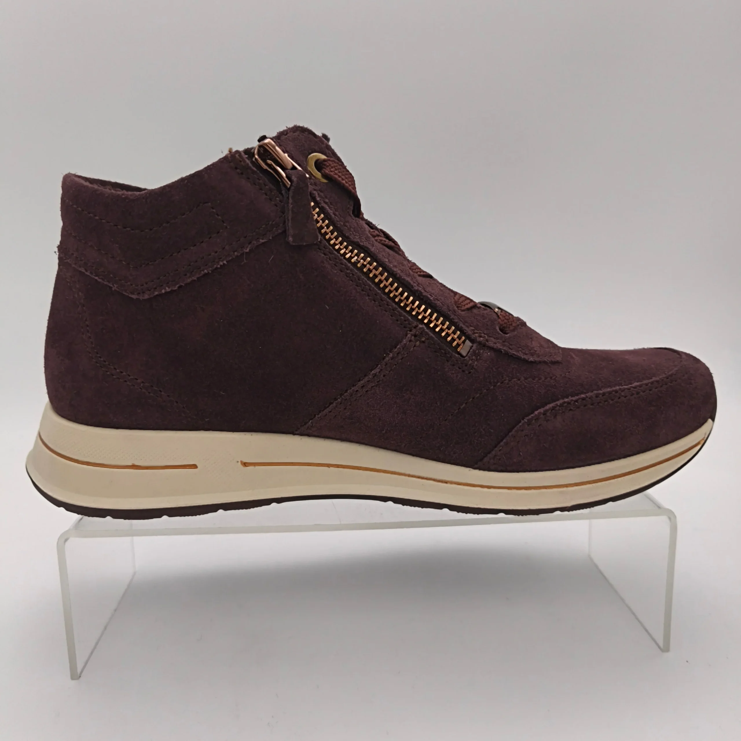 Marque : ARA Modèle : Baskets compensées Saisonnalité : Toutes saisons Talon : 3 cm Type de chausse : Largeur H Couleur : Lie de vin Matière extérieure : Cuir velours Matière intérieure : Cuir / Textile et autre Semelle intérieure : Textile et Autre / Amovible Semelle extérieure : Autre Fermeture : Zip / […]