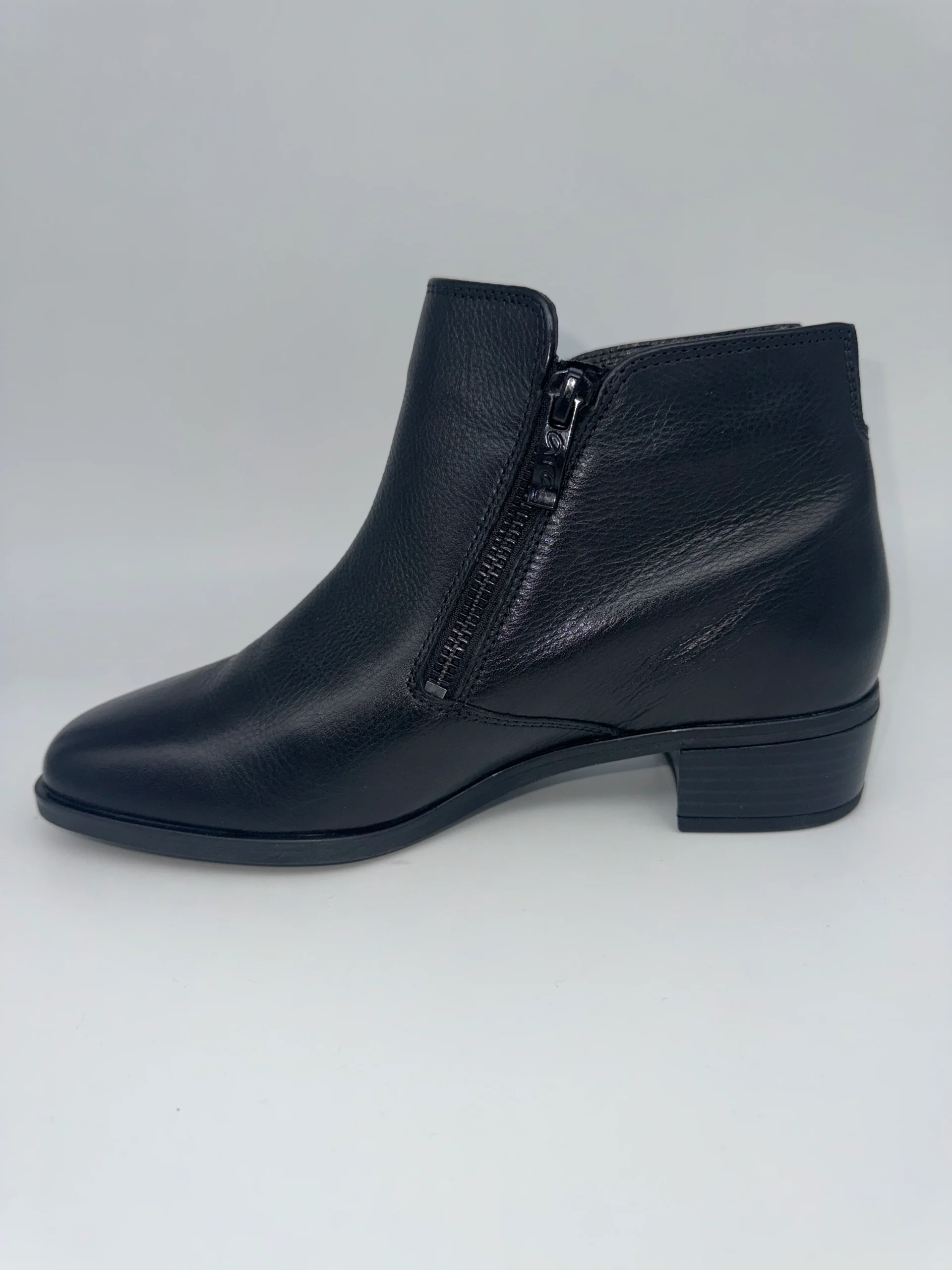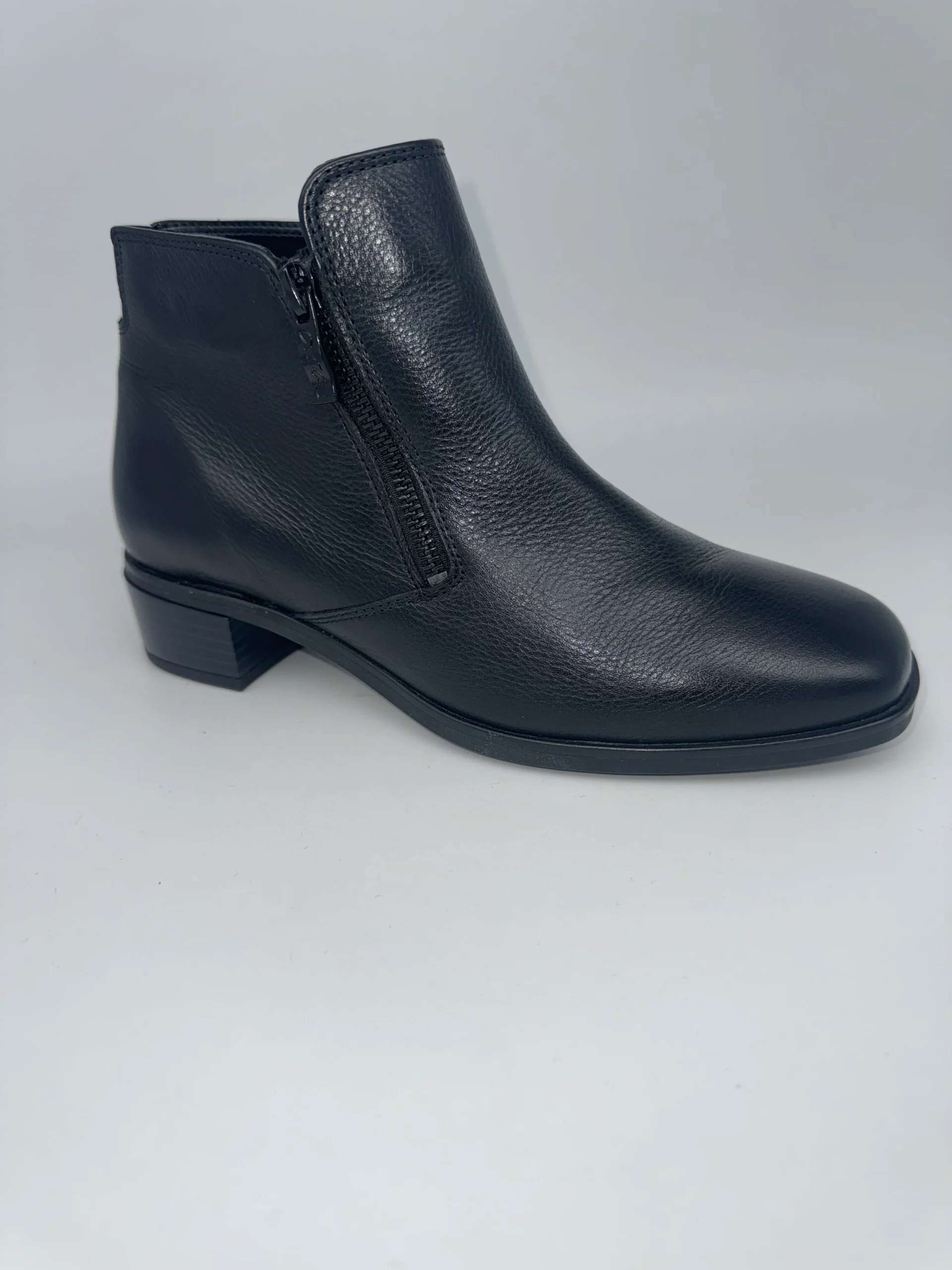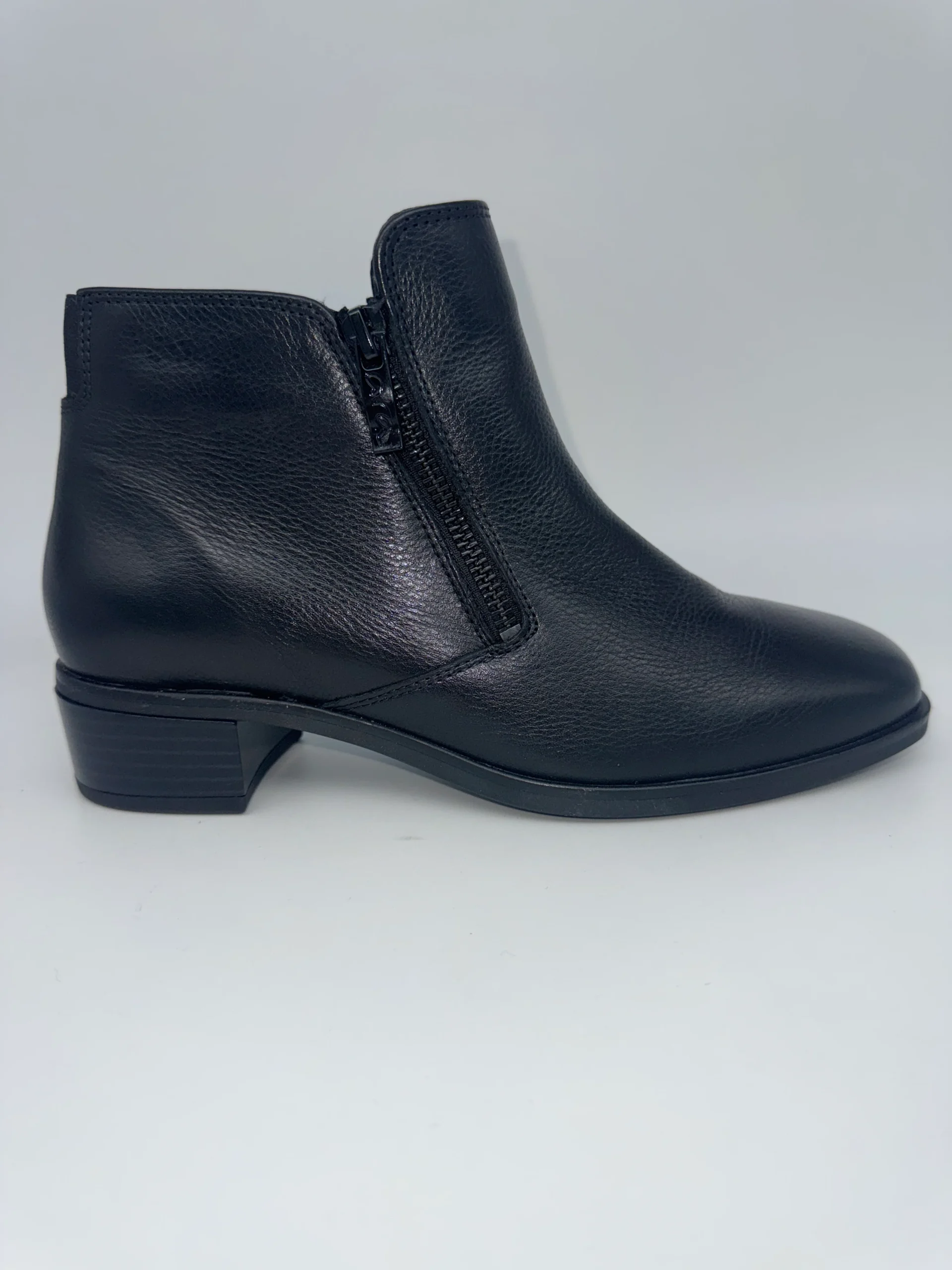Marque : ARA Modèle : Bottines Saisonnalité : Hiver Talon : 4 cm Type de chausse : Largeur H Couleur : Noir Matière extérieure : Cuir Matière intérieure : Textile et autre Semelle intérieure : Amovible Semelle extérieure : Autre Fermeture : Double zip
