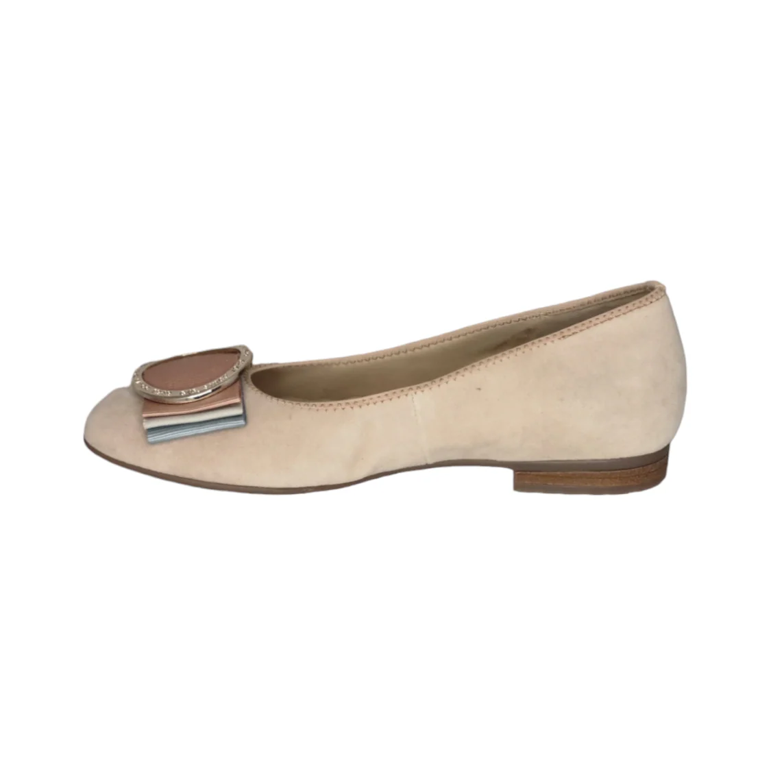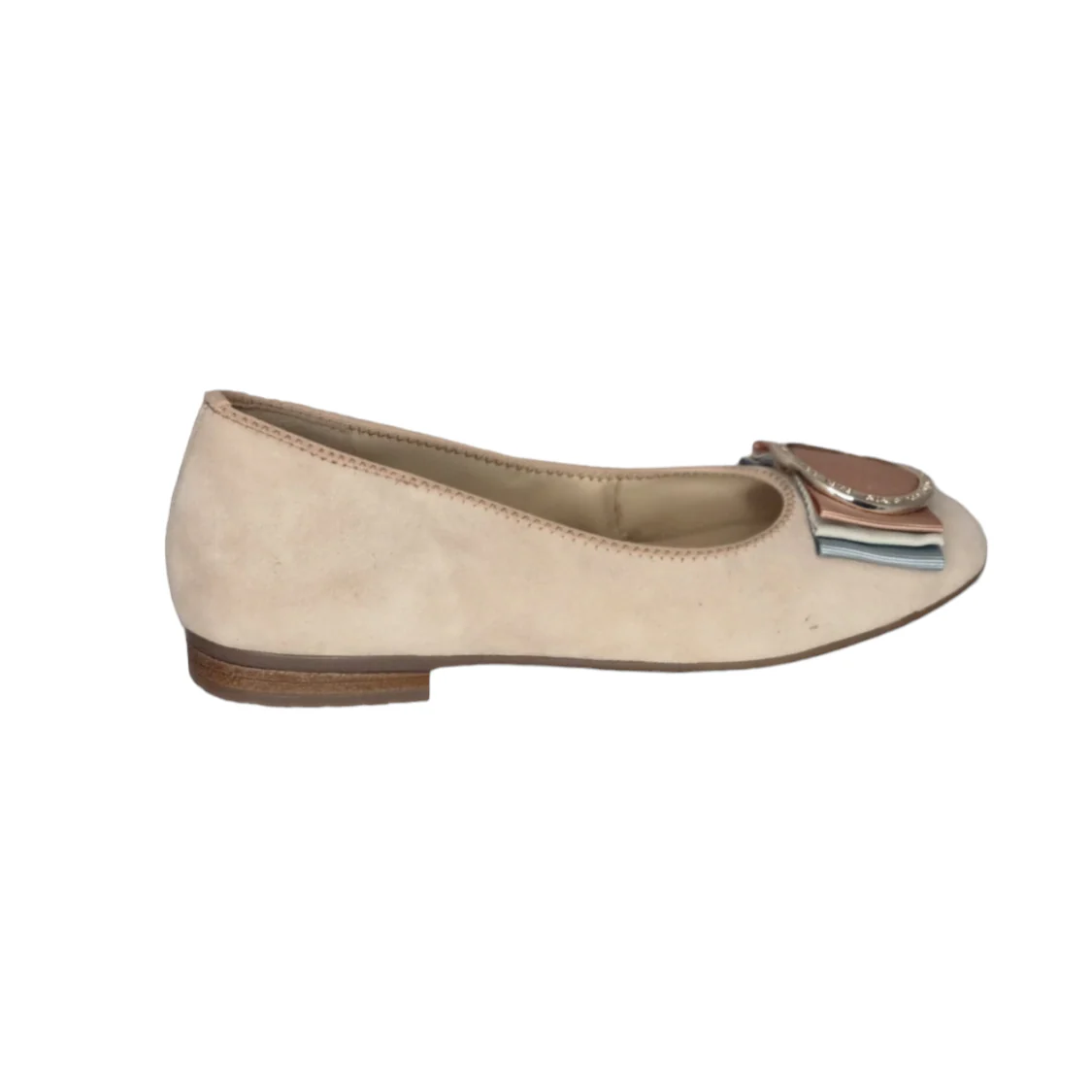 Marque : Ara Modèle : ballerines Saisonnalité : été Talon : 1.5 cm Type de chausse : G Couleur : camel Matière extérieure : cuir velours Matière intérieure : cuir Semelle intérieure : cuir sur mémoire de forme Semelle extérieure : autre