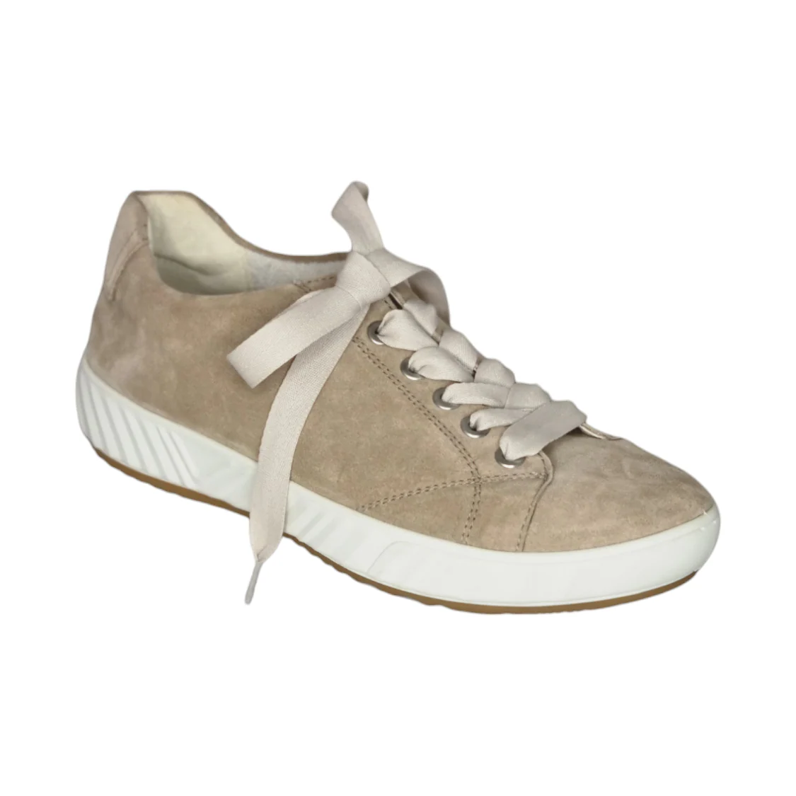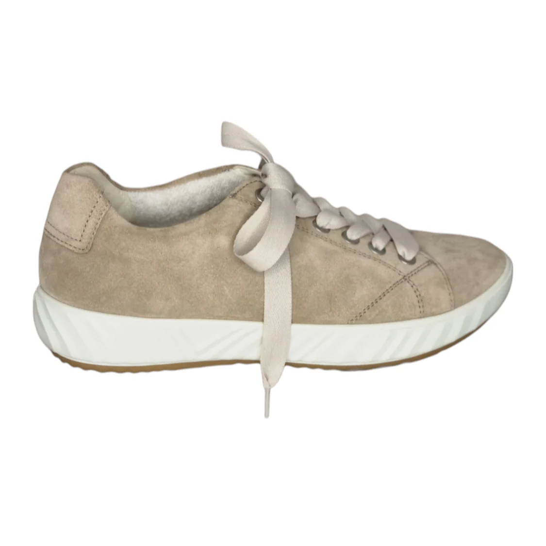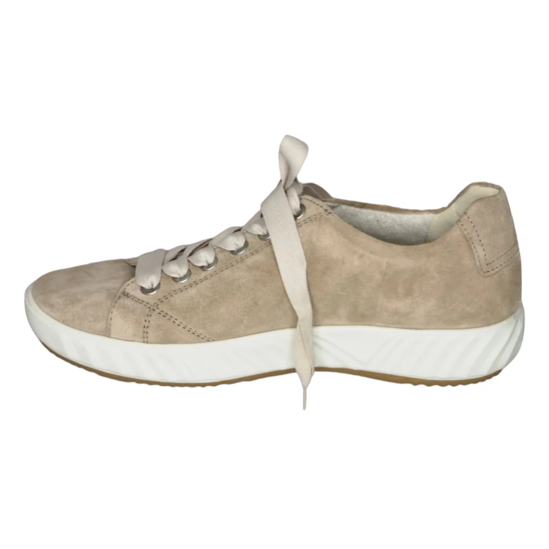Marque : Ara Modèle : basket Saisonnalité : été Type de chausse : Largeur H Couleur : beige Matière extérieure : cuir velours Matière intérieure : Éponge bambou Semelle intérieure : éponge bambou sur mémoire de forme Semelle extérieure : autre Fermeture : lacets