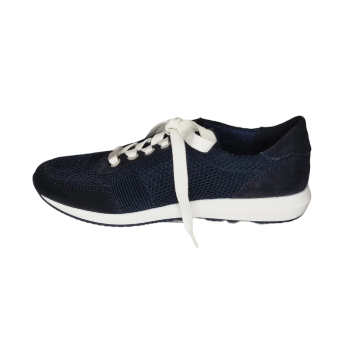 Marque : Ara Modèle : basket Saisonnalité : été Type de chausse : Largeur G Couleur : marine Talon : 2.5 cm Matière extérieure : textile Matière intérieure : éponge bambou Semelle intérieure : Eponge bambou sur mémoire de forme Semelle extérieure : autre Fermeture : lacets