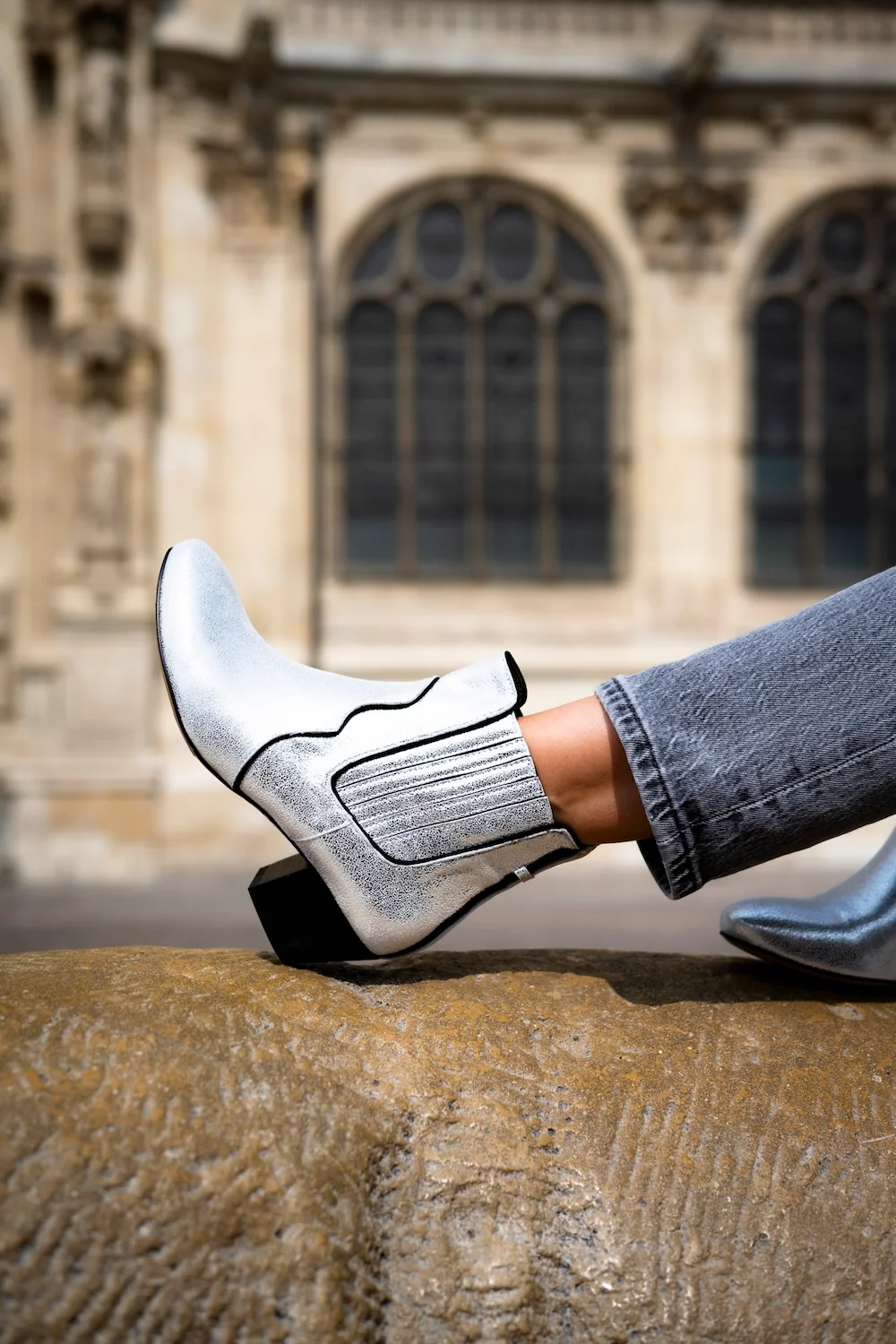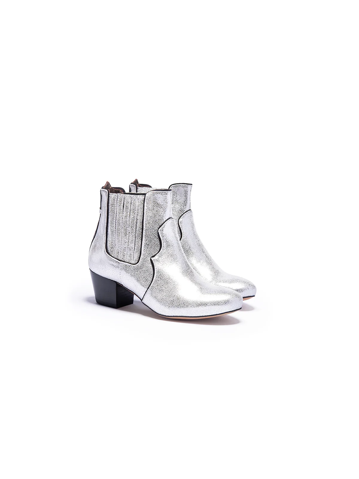 • Hauteur de Talon : 4,5 cm• Nubuck métallisé argent, Détails nubuck noir• Talon Noir Effet Bois • Semelle intérieure et extérieure Cuir• Fabrication : Espagne• La Bullit chausse à la pointure Note : La peausserie peut présenter des irrégularités.