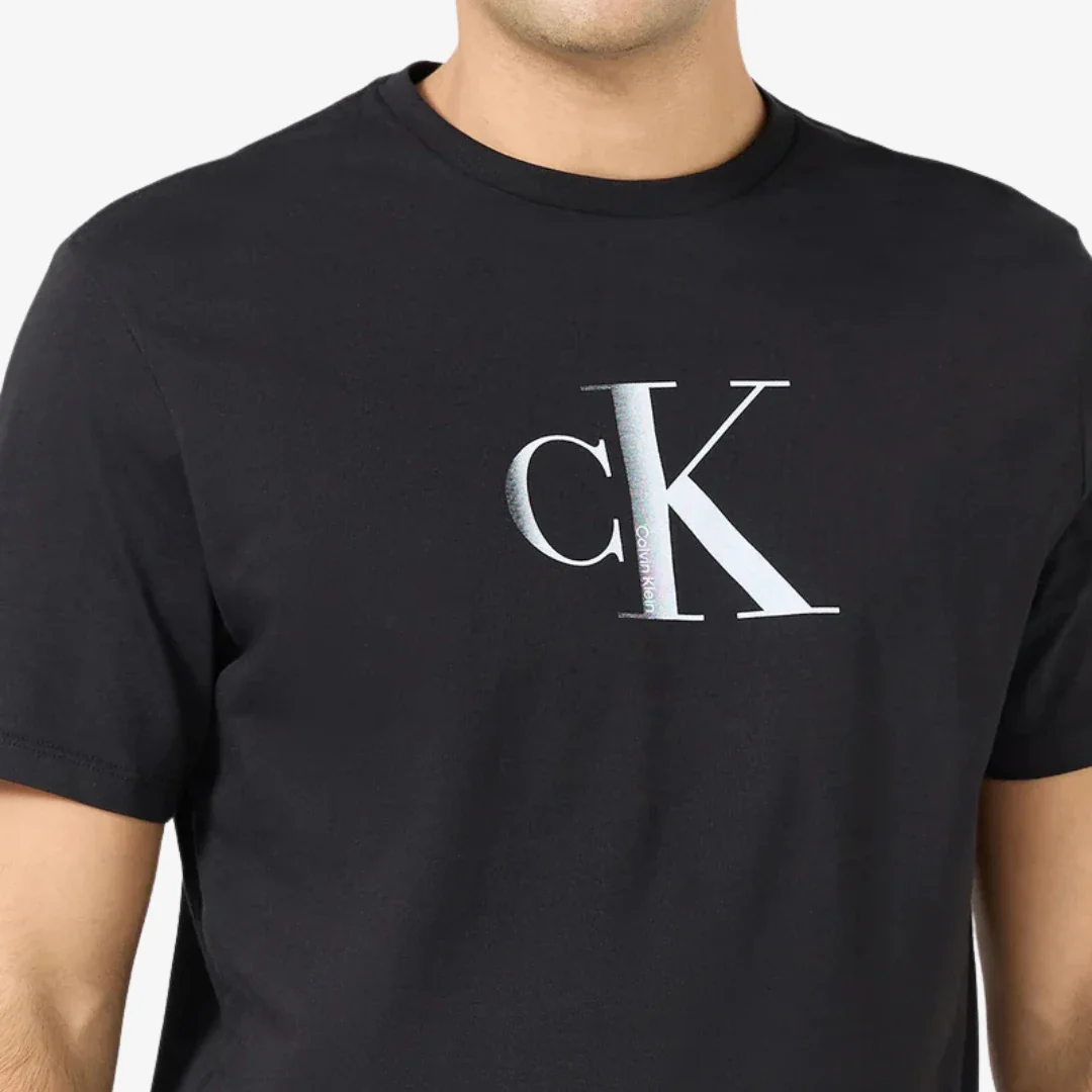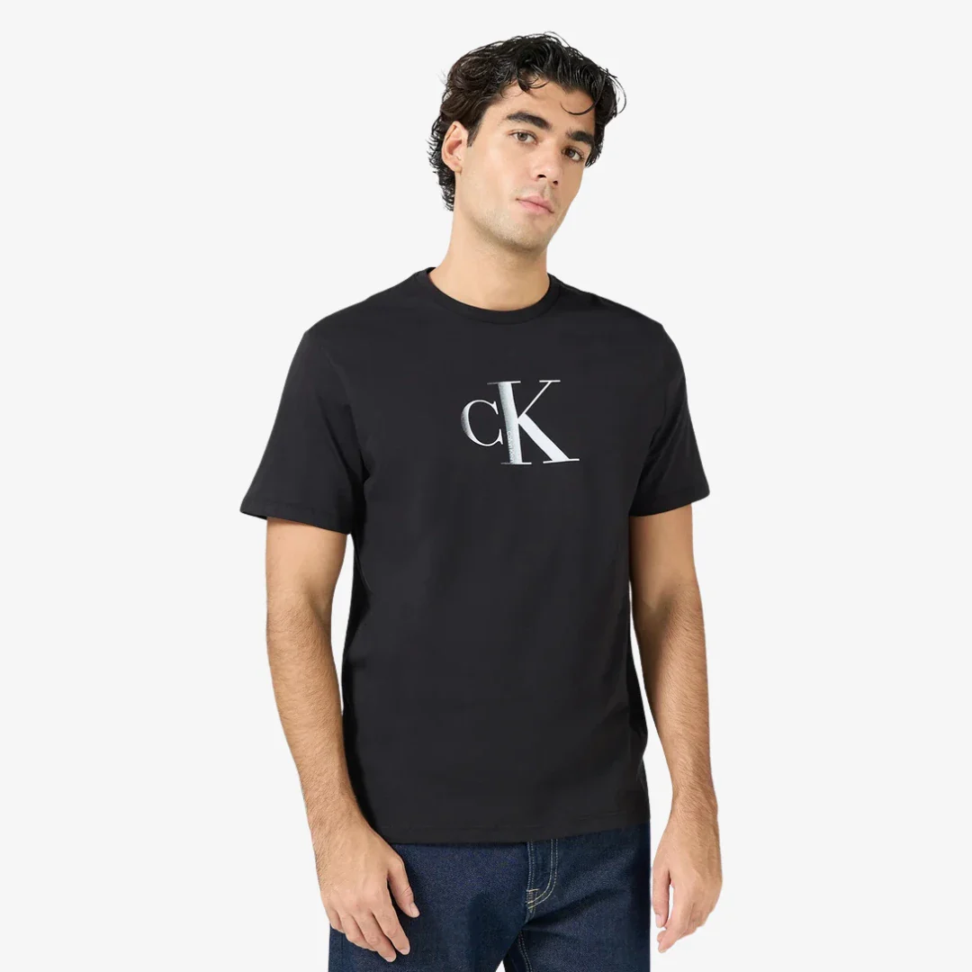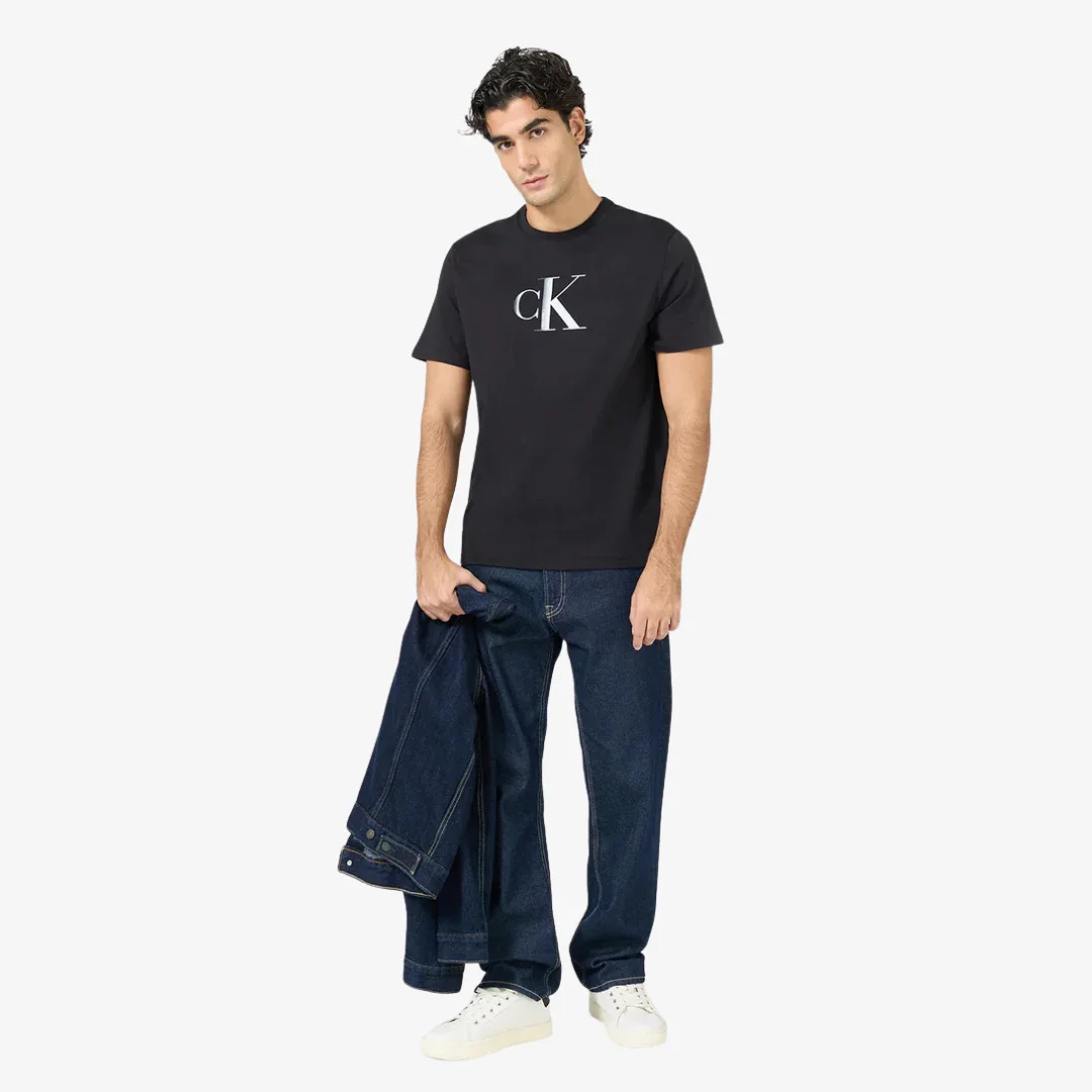 T-shirt homme à manches courtes, col rond, motif monogramme centré « CK Jeans » sur la poitrine. Un basique urbain pour un style casual affirmé.