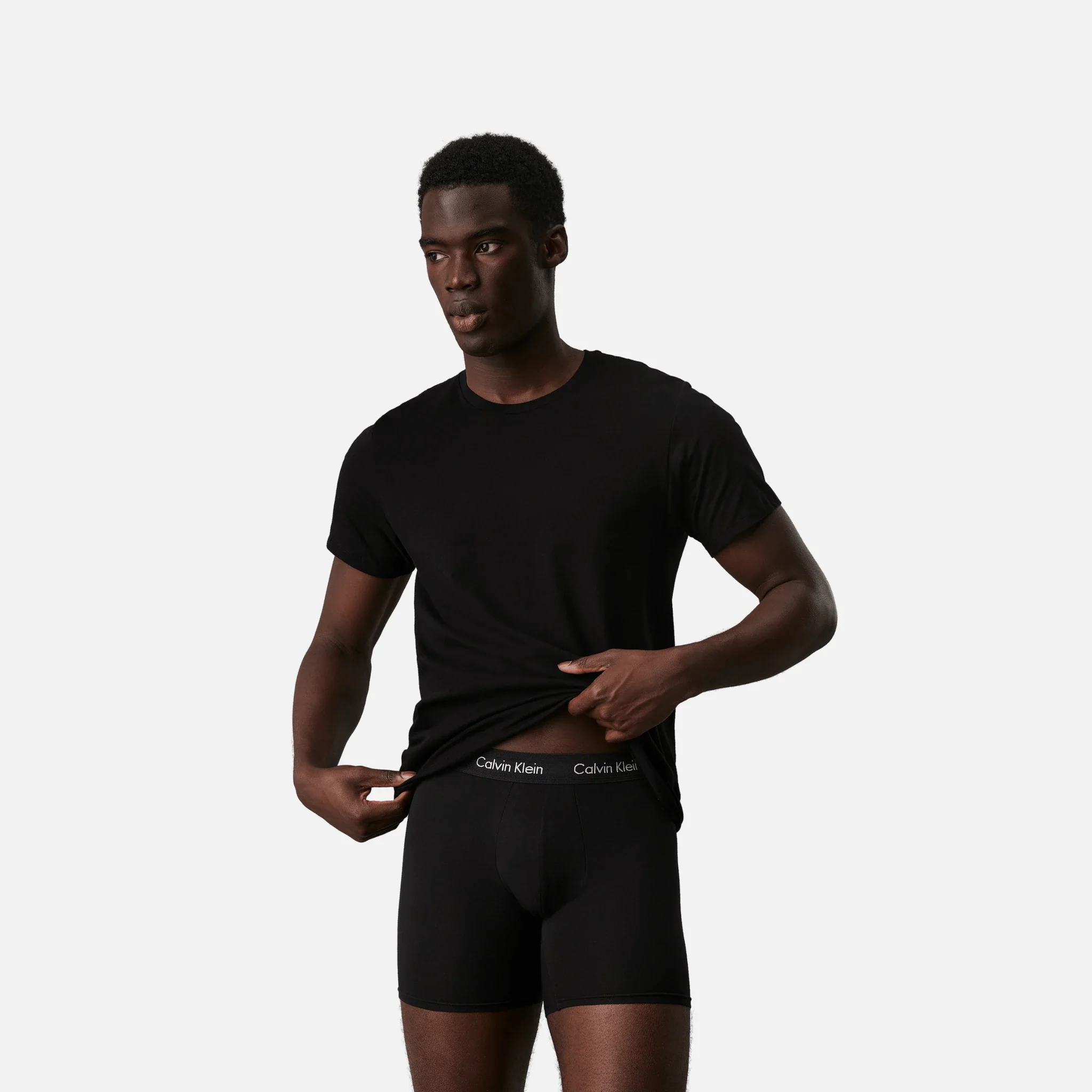 Réinventez vos basiques avec ce lot de trois T-shirts à manches courtes Calvin Klein confectionnés en jersey de coton doux et respirant. Leur coupe classique et leur col rond assurent un confort optimal et une allure polyvalente au quotidien. Le logo discret Calvin Klein sur l’ourlet complète ce trio avec une touche d’élégance sobre et contemporaine.