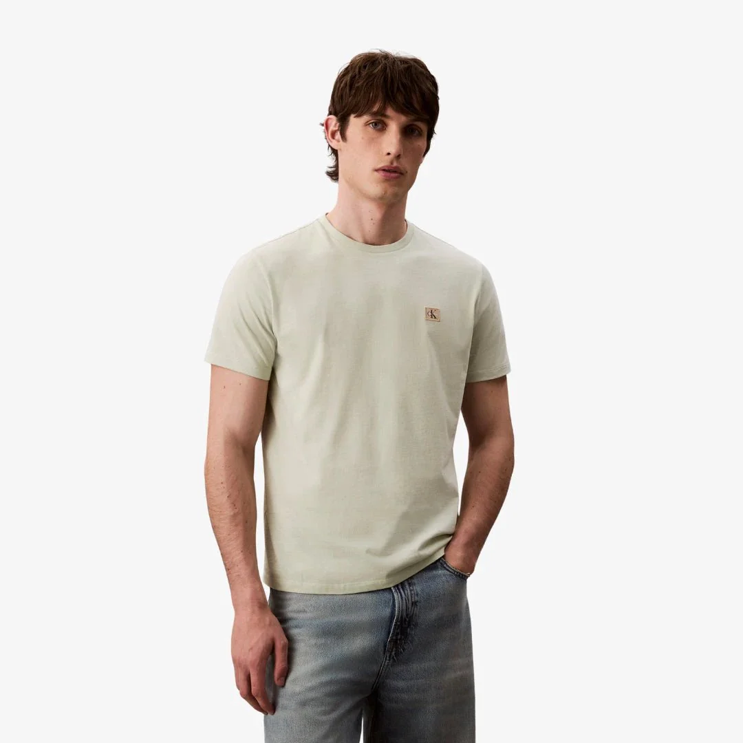 T-shirt homme à manches courtes, coupe régulière, encolure ronde. Il arbore un badge monogramme « CK » discret sur la poitrine, parfait pour une tenue urbaine élégante.