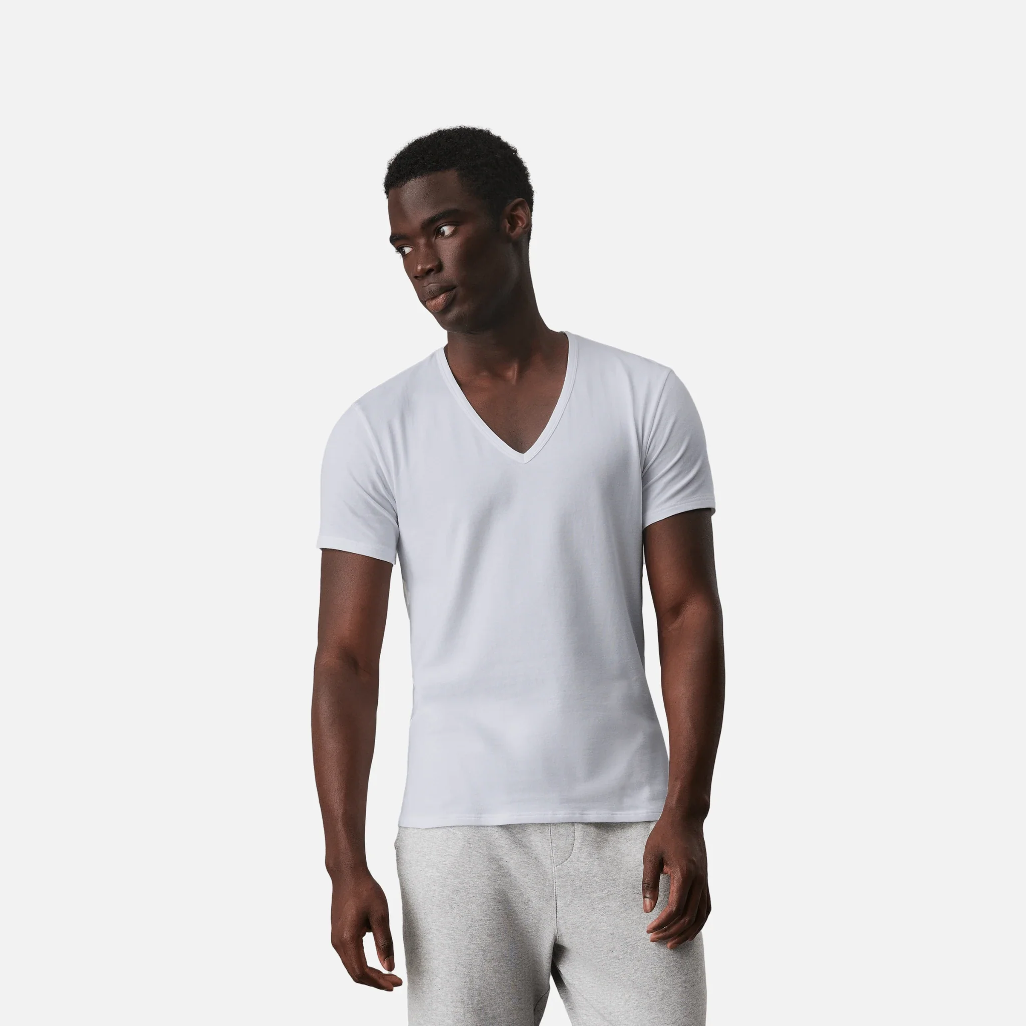 Misez sur le confort et la simplicité avec ce lot de deux T-shirts à manches courtes Calvin Klein en jersey de coton stretch doux. Leur coupe classique et leur col en V offrent une allure élégante et décontractée, idéale pour les moments de détente ou pour superposer sous une chemise. L’alliance parfaite entre minimalisme et confort signé Calvin Klein.