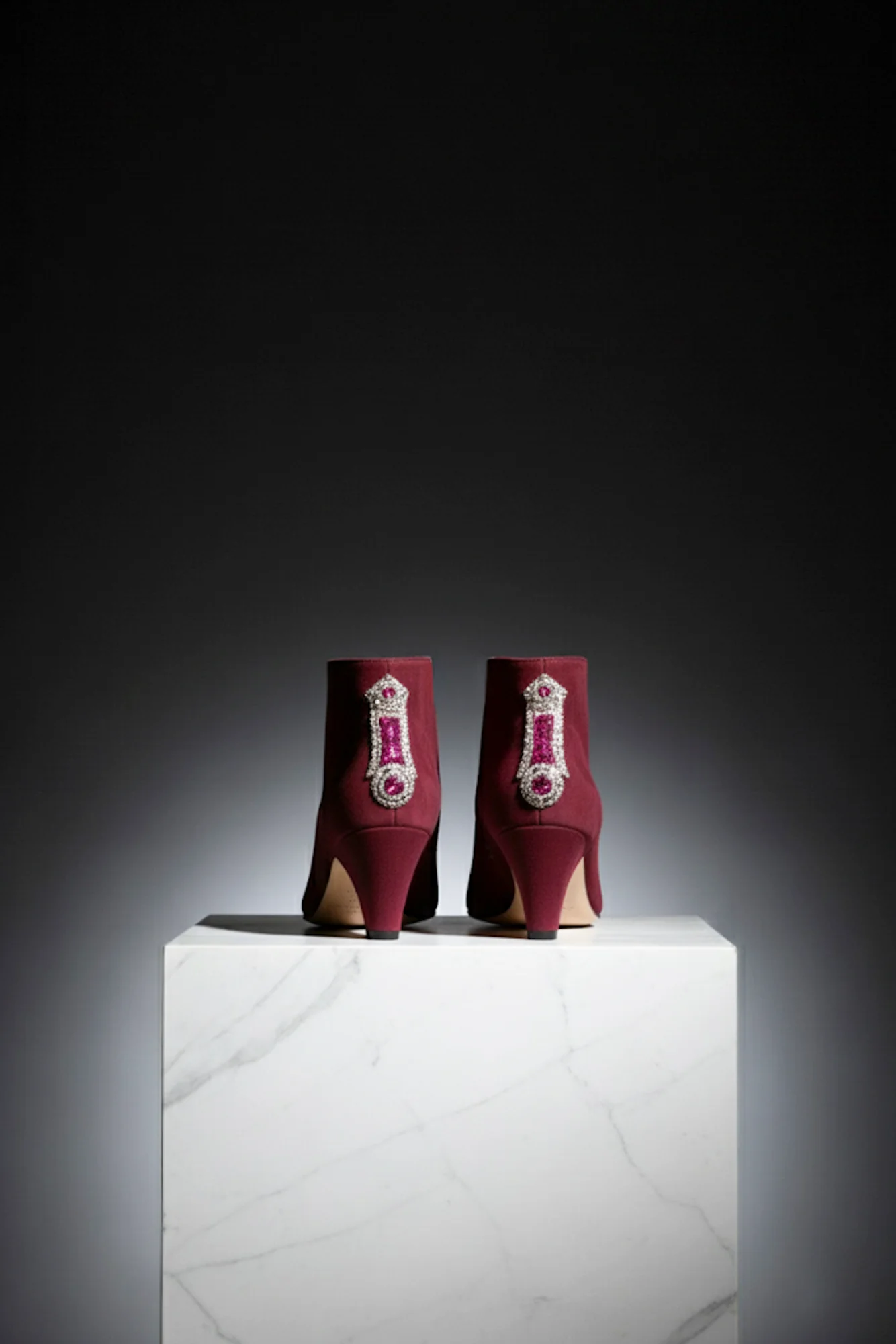 • Nubuck bordeaux, Détail glitter argenté et fuchsia