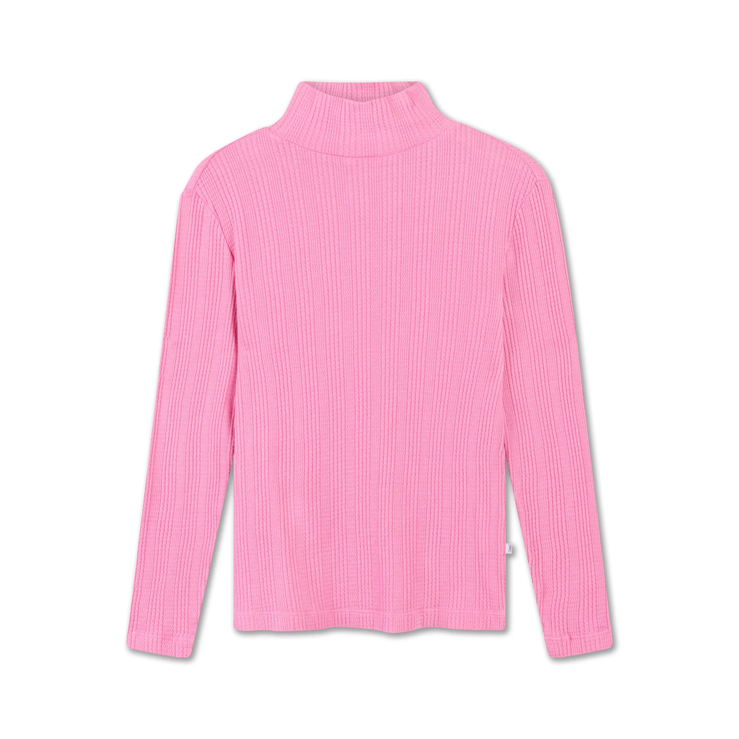 Ce col roulé en coton rose s’accorde aussi bien avec un jean qu’avec une jupe fluide pour un look moderne et féminin.