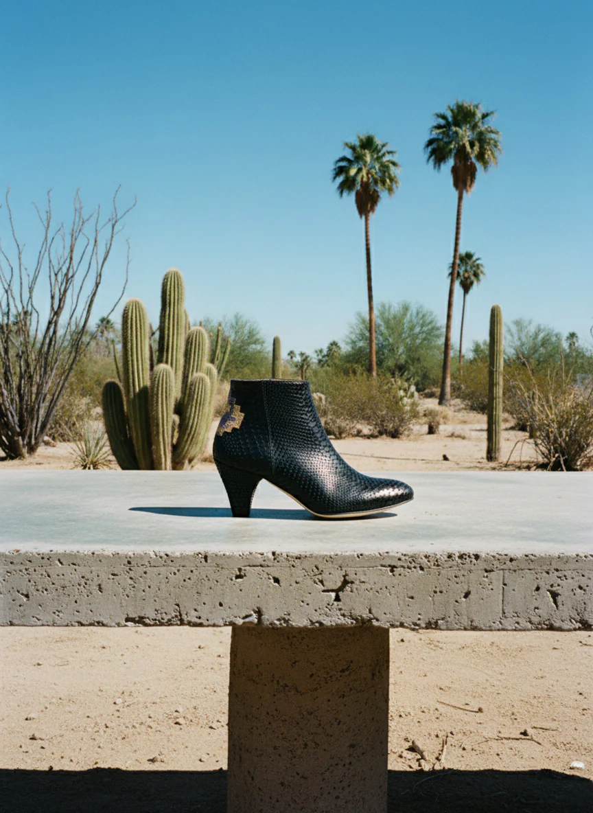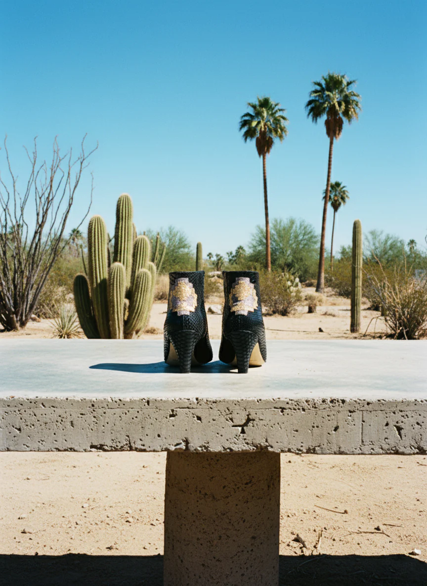 • Hauteur de Talon : 5,5 cm• Nubuck imprimé métallisé noir, Détails Glitter champagne et acier• Semelle intérieure et extérieure Cuir• Fabrication : Espagne• La Delfonia chausse à la pointure Note : La peausserie peut présenter des irrégularités.