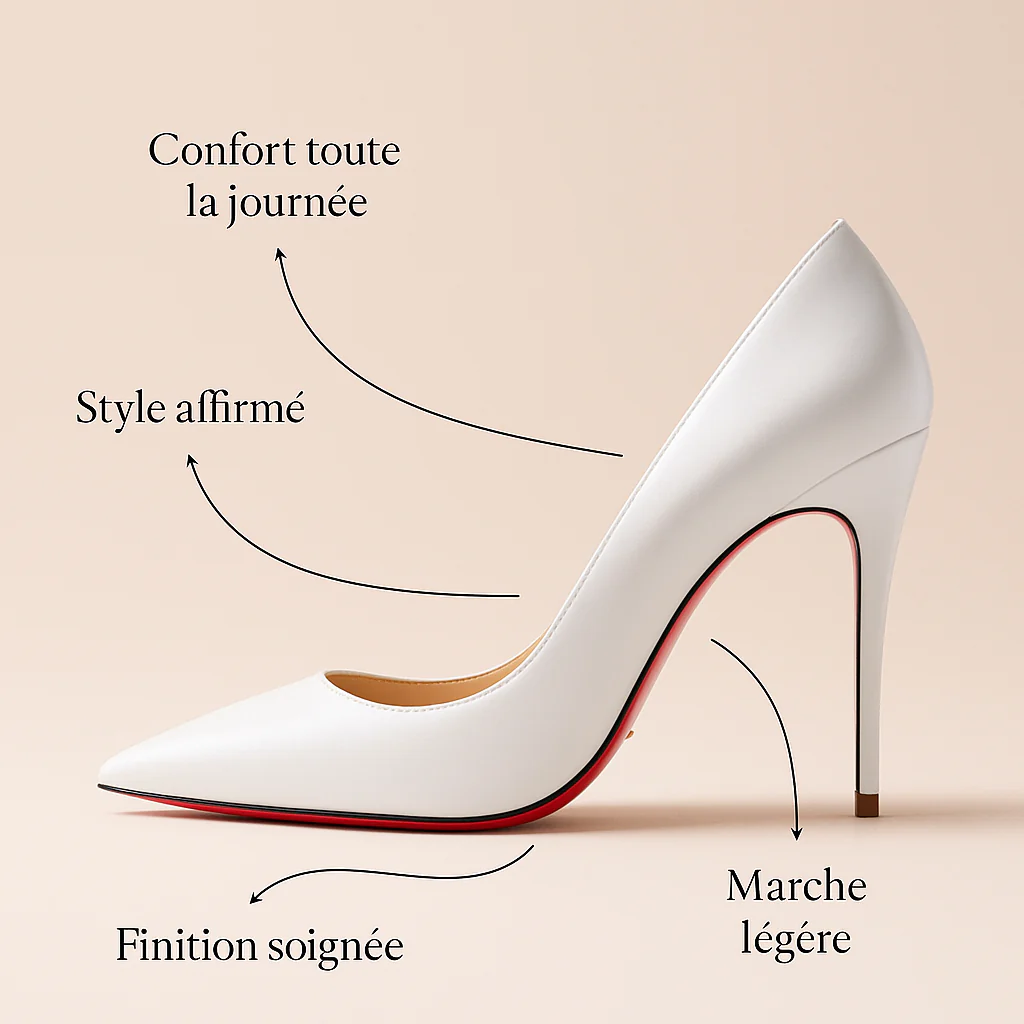 Imaginez-vous traversant le hall d’un hôtel, vos escarpins blancs scintillants sous la lumière dorée, un souffle de confiance dans le regard et l’impression subtile d’impeccable harmonie… Vous ne marchez pas, vous laissez une empreinte.