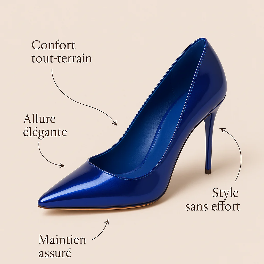 Sa cambrure délicate élève la silhouette avec finesse. L’effet porté? Une ligne sculptée, une présence lumineuse, un style affirmé jusque dans la simplicité.