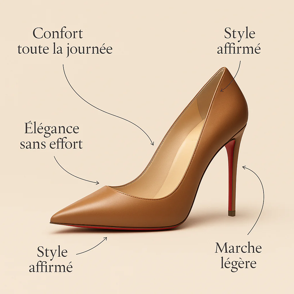 Imaginez : les pavés résonnent à peine sous vos talons. Chaque pas est un choix d’élégance, chaque geste réveille la soie de votre robe. À vos pieds, la distinction se fait sensorielle.