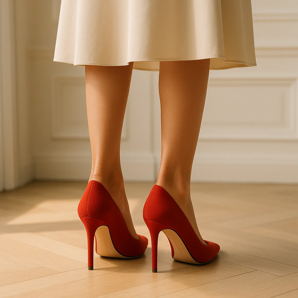 Escarpin Daim Rouge – Élégance sensuelle aux lignes infiniment féminines