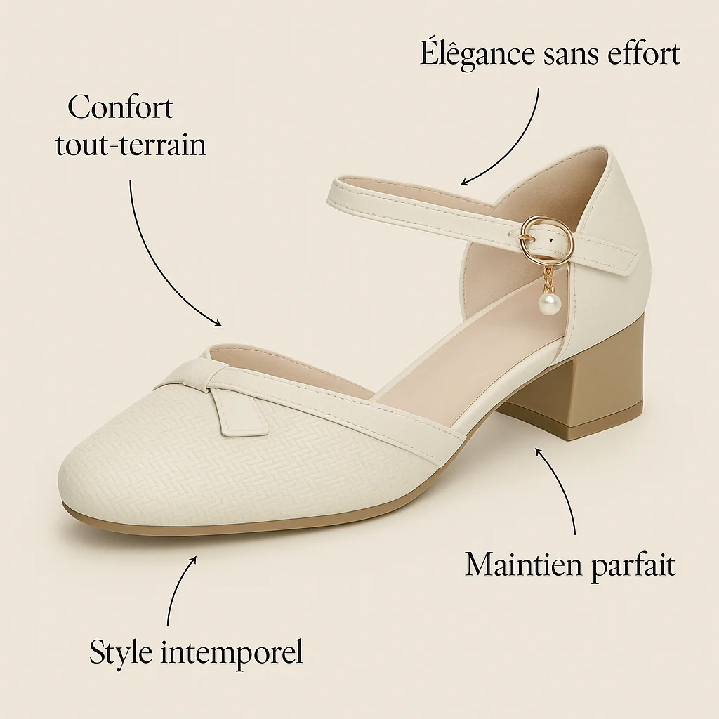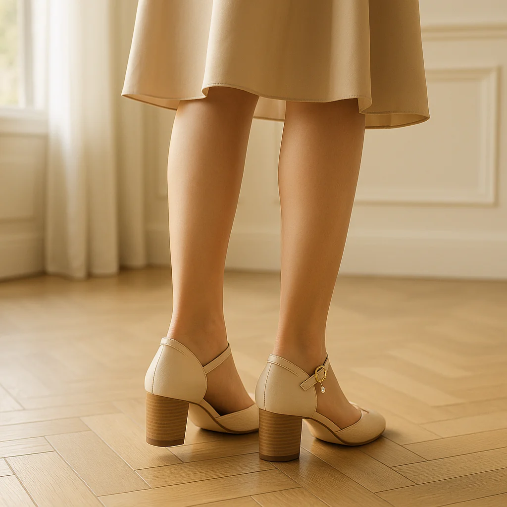 Glissez votre pied, fermez la bride, sentez la promesse. Le cuir lisse épouse délicatement la peau, la lumière accroche le cou-de-pied. Vous voilà prête — droite, sereine, lumineuse.