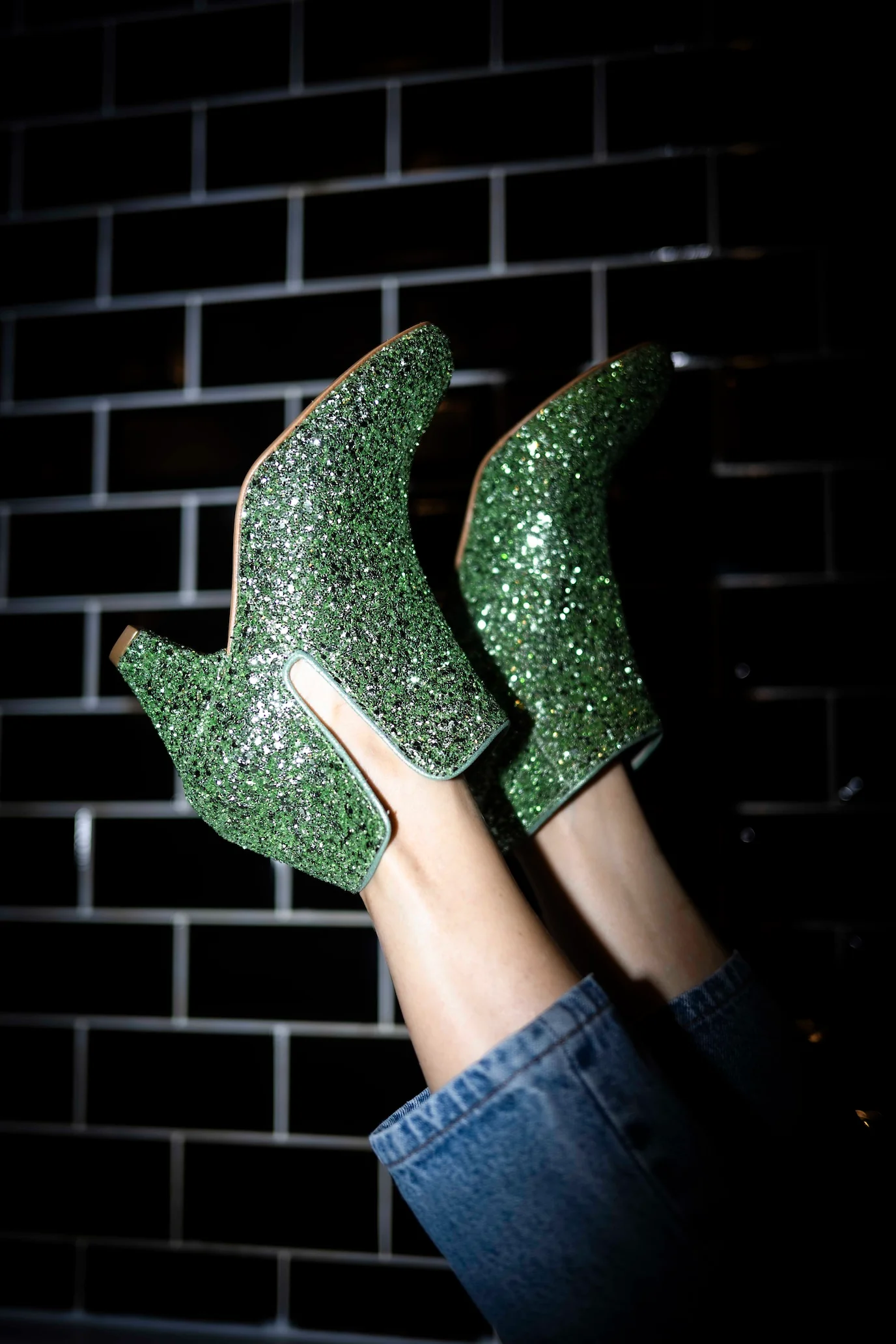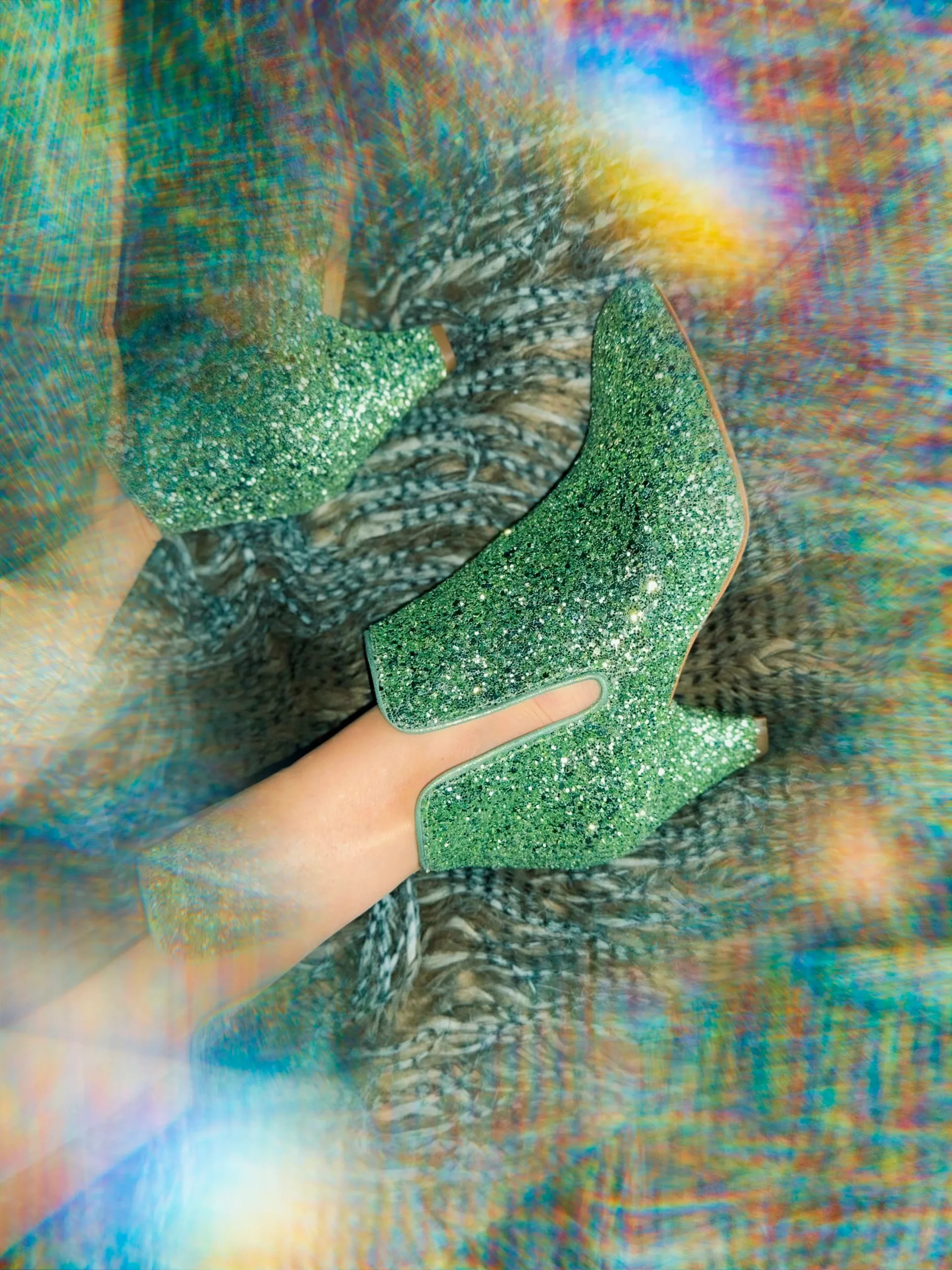 • Glitter vert clair, Détails nubuck métallisé vert