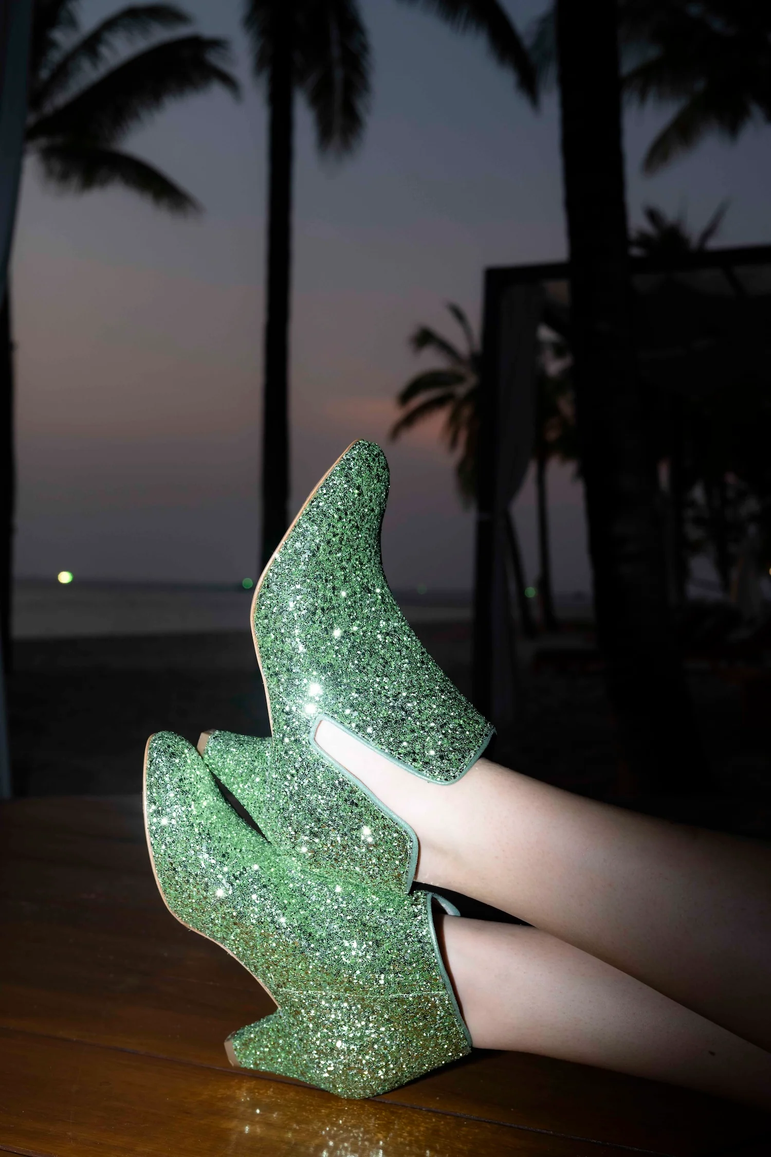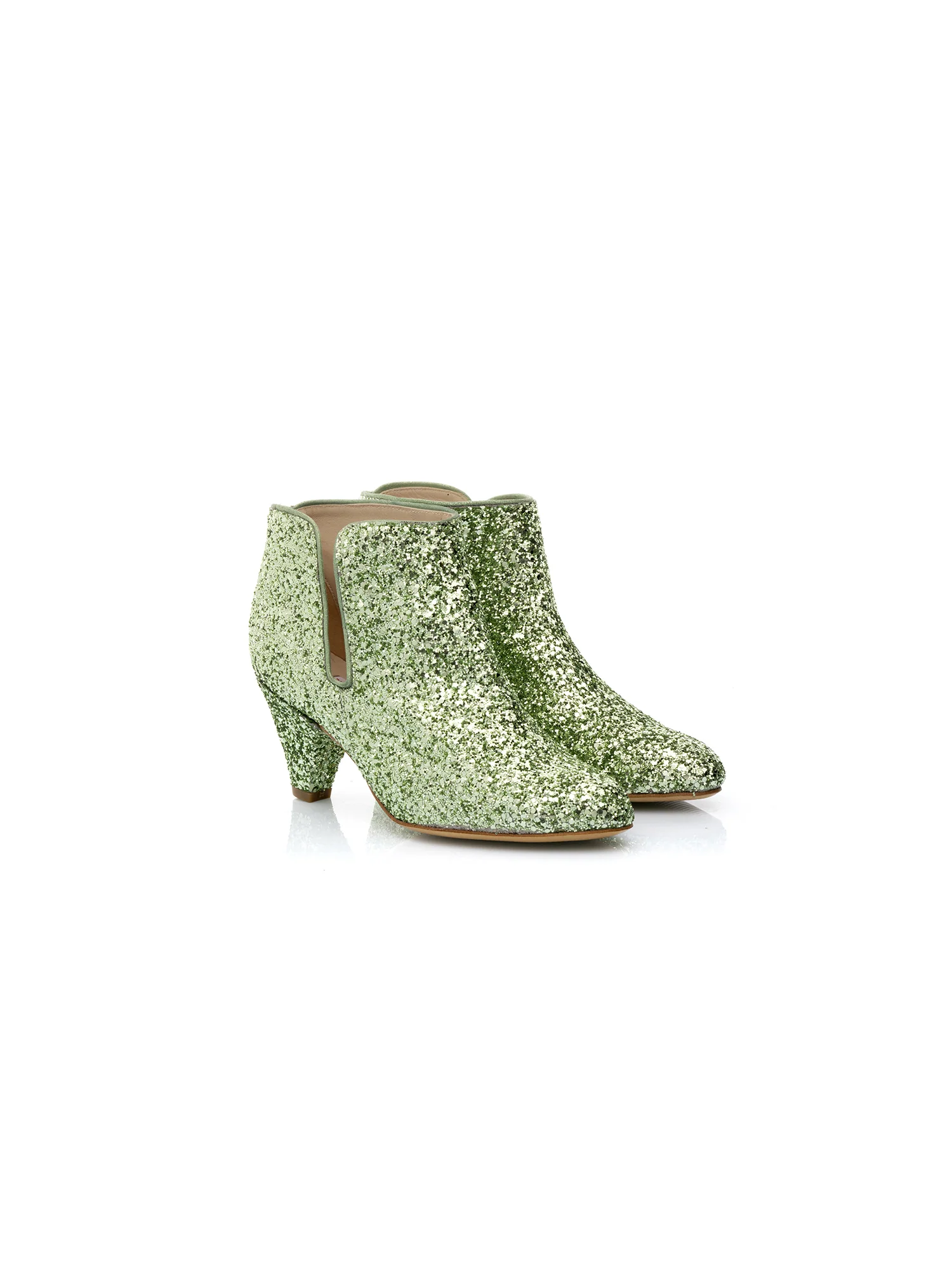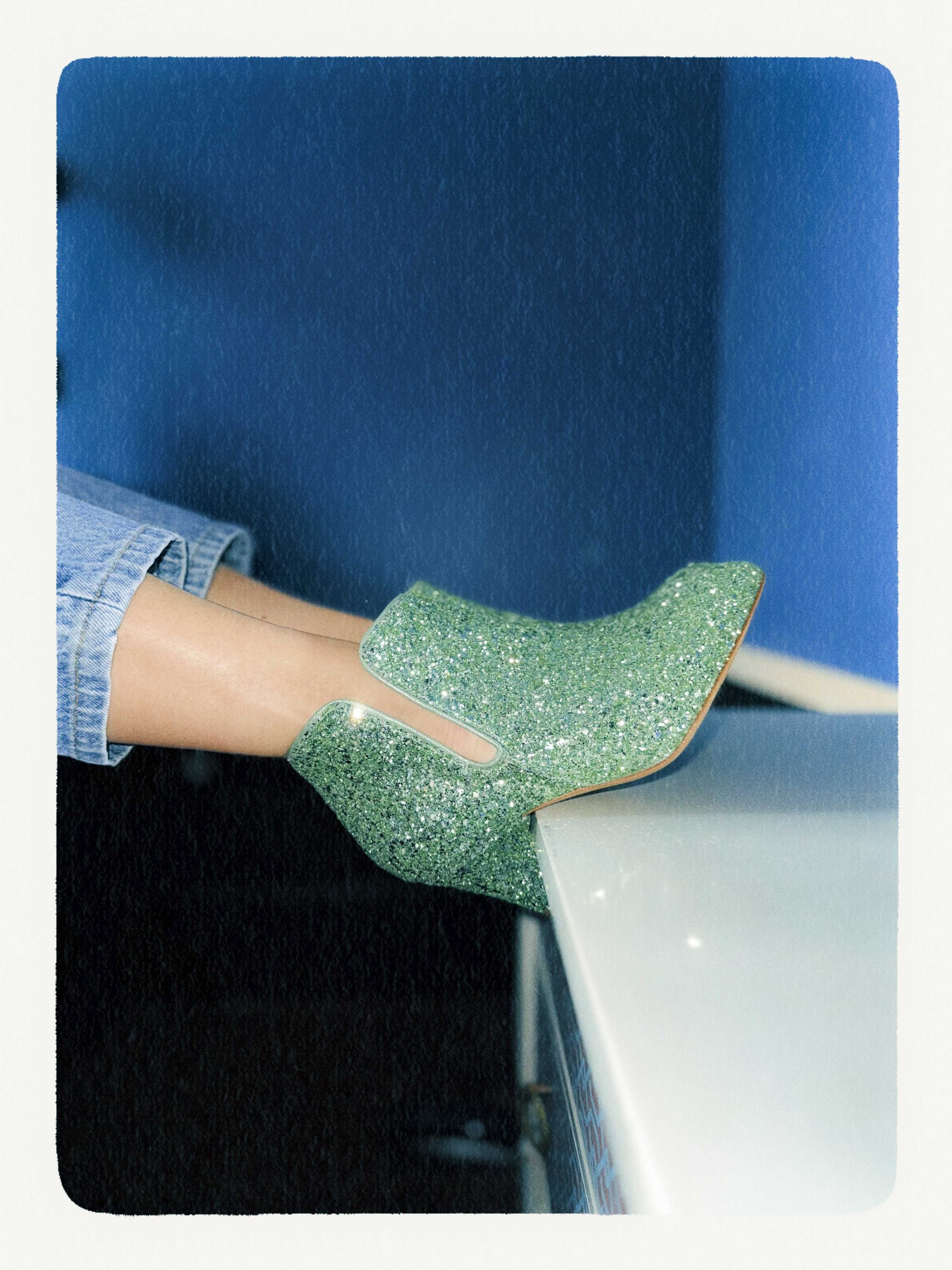 • Hauteur de Talon : 5,5 cm • Glitter vert clair, Détails nubuck métallisé vert • Semelle intérieure et extérieure Cuir • Fabrication : Espagne • La Forty-Four chausse à la pointure