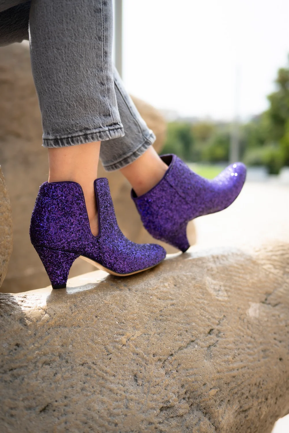 • Hauteur de Talon : 5,5 cm • Glitter violet, Détails nubuck violet • Semelle intérieure et extérieure Cuir • Fabrication : Espagne • La Forty-Four chausse à la pointure