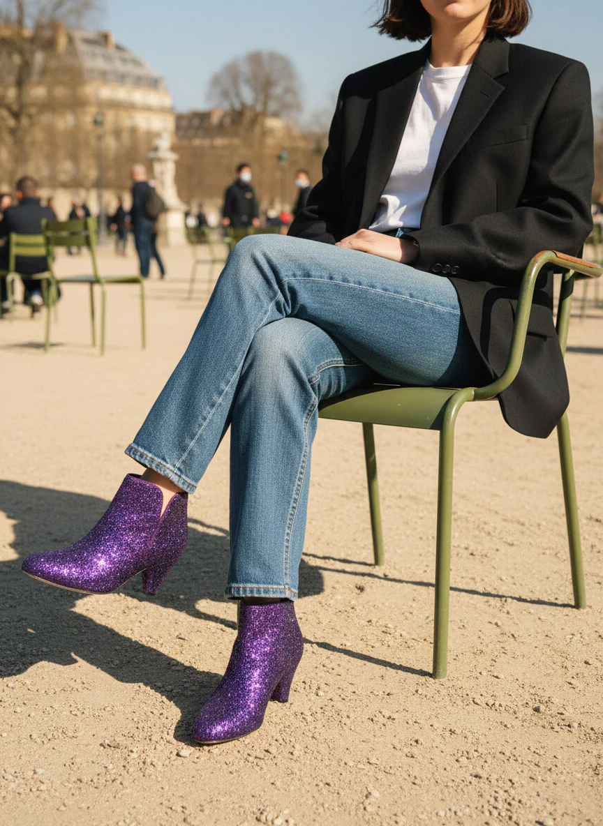 • Glitter violet, Détails nubuck violet