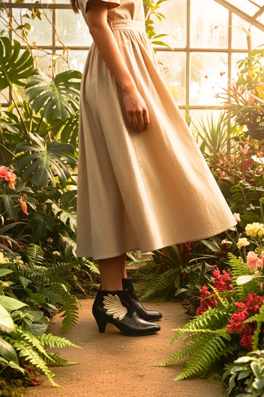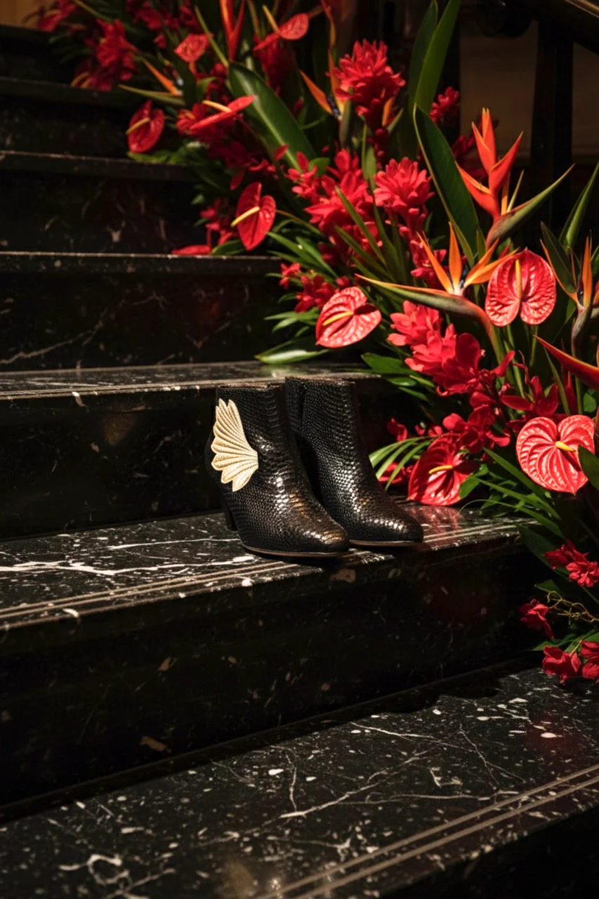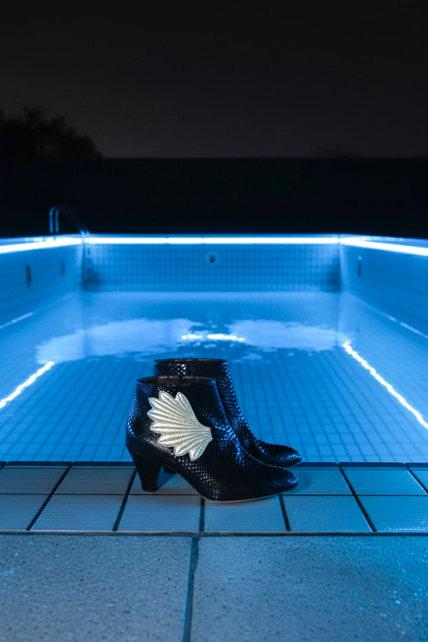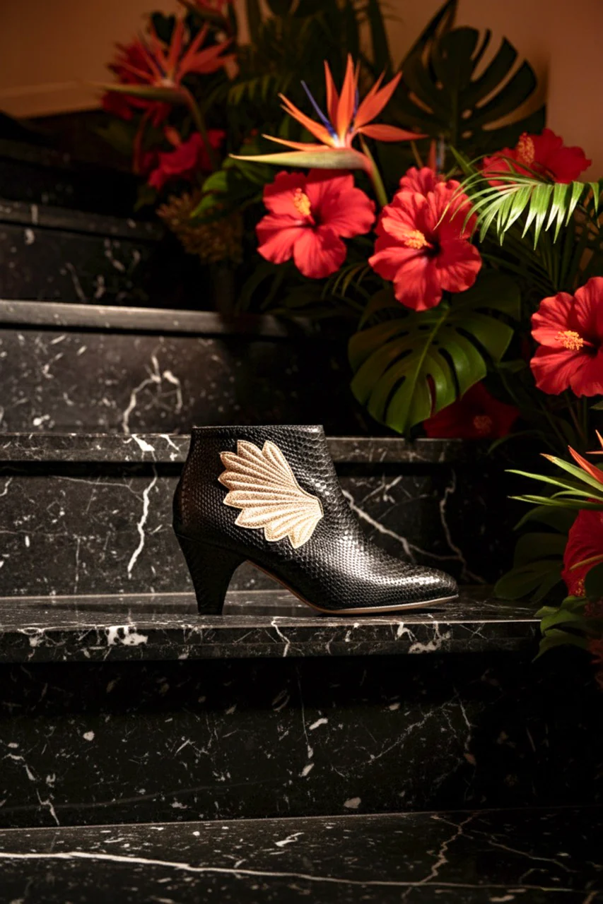 • Hauteur de Talon : 5,5 cm• Nubuck imprimé métallisé noir, Détail nubuck métallisé champagne• Semelle intérieure et extérieure Cuir• Fabrication : Espagne• La Hooping chausse à la pointure Note : La peausserie peut présenter des irrégularités.
