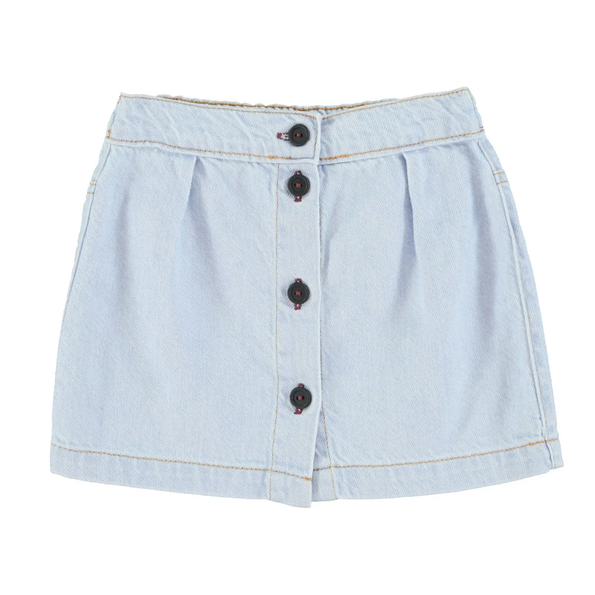 Cette jupe courte en denim doux bleu clair est un essentiel du vestiaire enfant, alliant style et praticité. Elle est dotée de boutons noirs sur le devant et d’une taille ajustable pour un maintien parfait. Au dos, un logo en cuir discret apporte une touche de caractère. Facile à associer avec un t-shirt ou une blouse, cette pièce est idéale pour un look casual-chic tout au long de l’année.