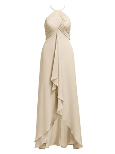 Ravissante robe de soirée ou demoiselle d’honneur longue à ras du sol. Le haut de la robe est tenu par un ras de cou avec lacet. Cette robe couleur champagne est idéale pour une cérémonie de mariage, un gala, baptême, anniversaire,etc. Ce modèle existe en toutes les tailles et d’autres couleurs.