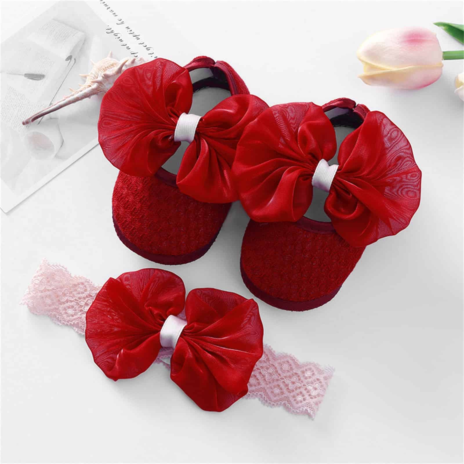 Mocassin avec nœud et semelle souple pour bébé fille