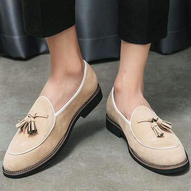 Mocassins à glands en cuir suède à surpiqûres Mocassin blanches
