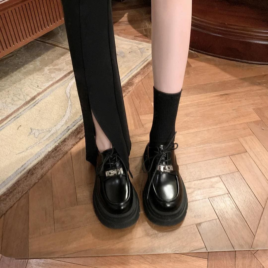 Découvrez notre sélection de mocassins en cuir à semelle épaisse noire pour femmes avec lacets, des chaussures à la fois élégantes et polyvalentes qui rehausseront votre look. Leur teinte noire classique apporte une touche intemporelle, permettant d’associer facilement ces mocassins à une multitude de styles et de couleurs.