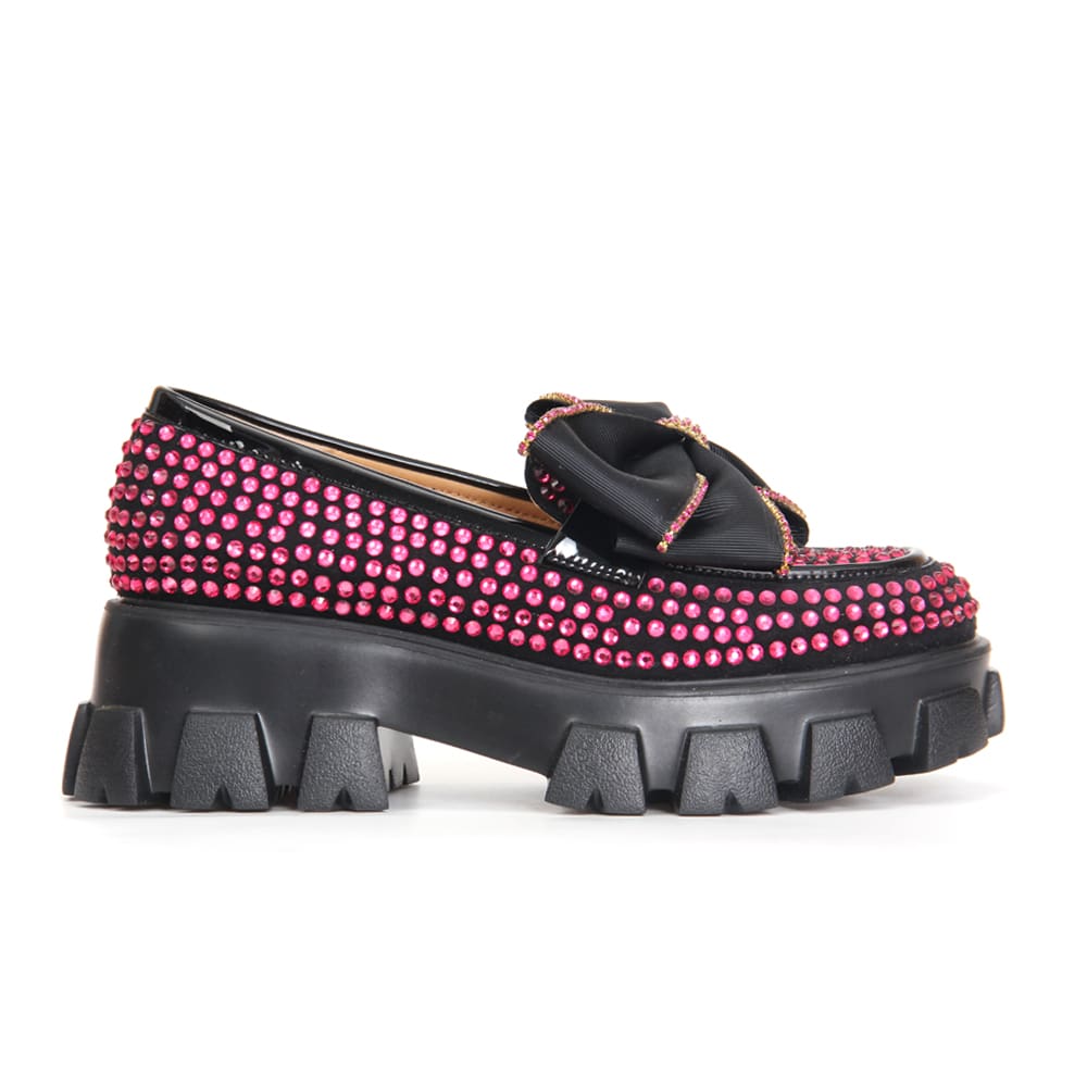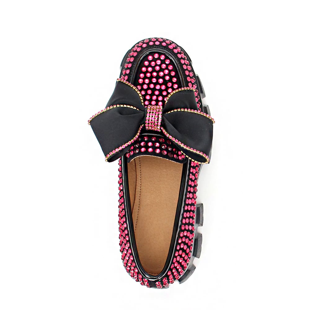 Nos mocassins à plateforme pour femmes avec papillon en strass rose représentent l’élégance et le raffinement ultime.