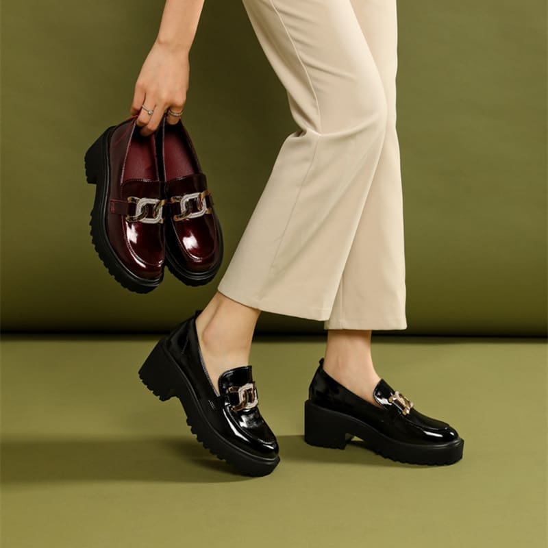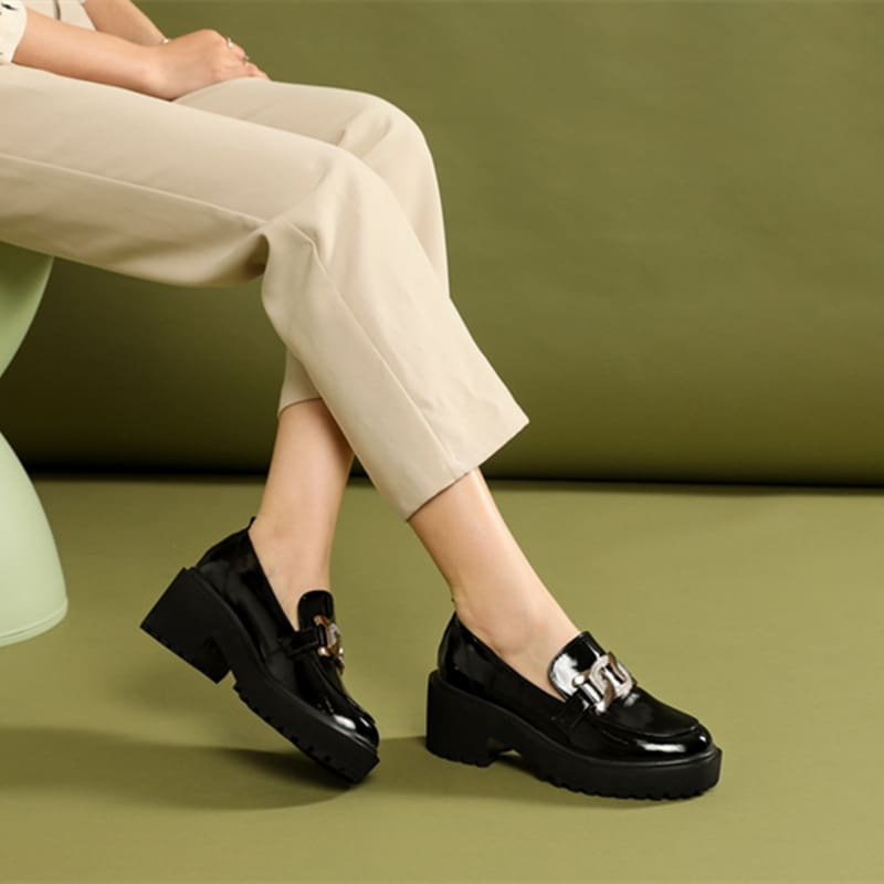 Les mocassins à plateforme pour femmes ornés d’une chaîne dorée scintillante représentent l’option idéale pour celles qui souhaitent allier style, confort et raffinement.
