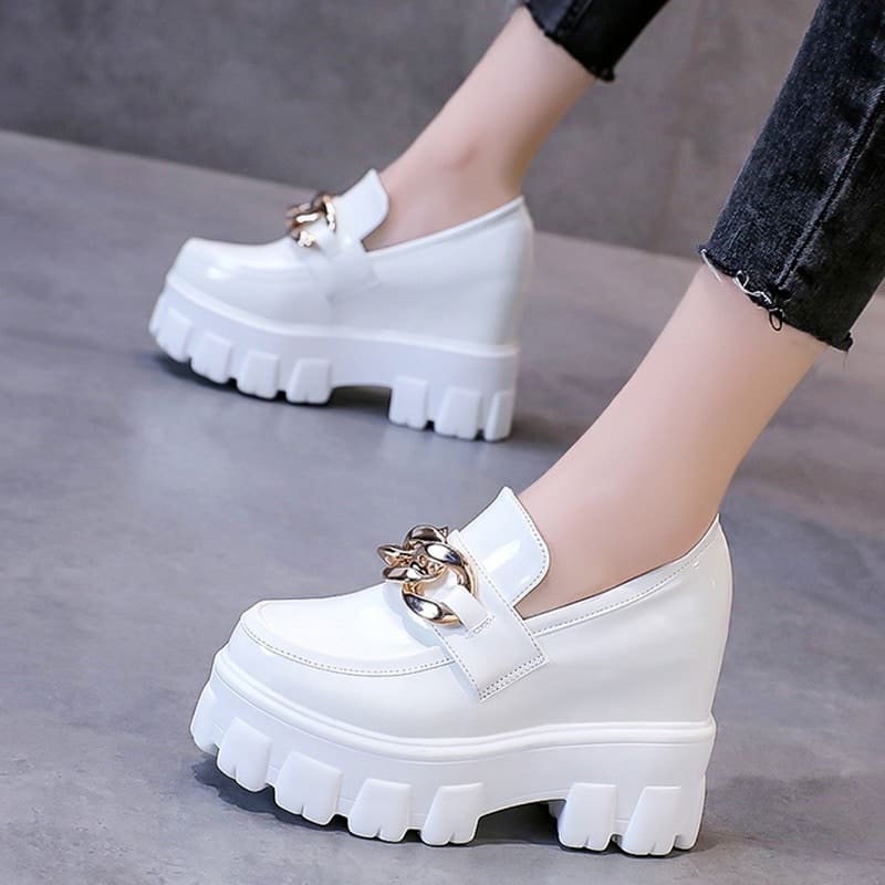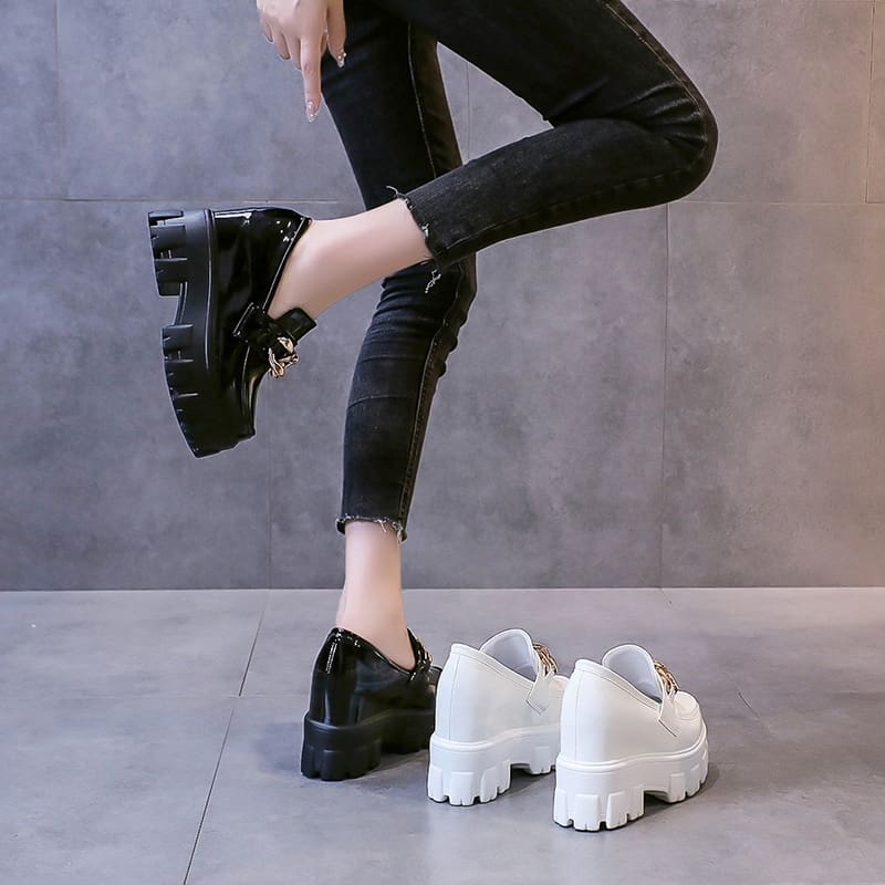 Mocassins à plateforme en cuir verni avec chaîne Mocassin dorée pour femmes