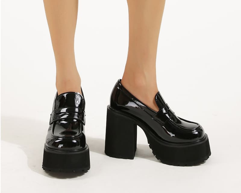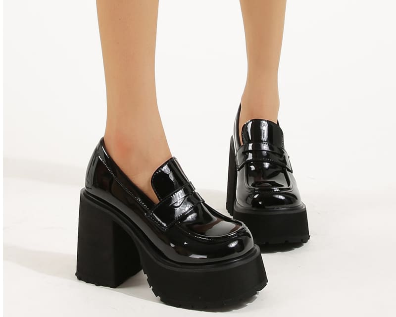 Mocassins à talons à semelle épaisse Mocassin noire pour femmes