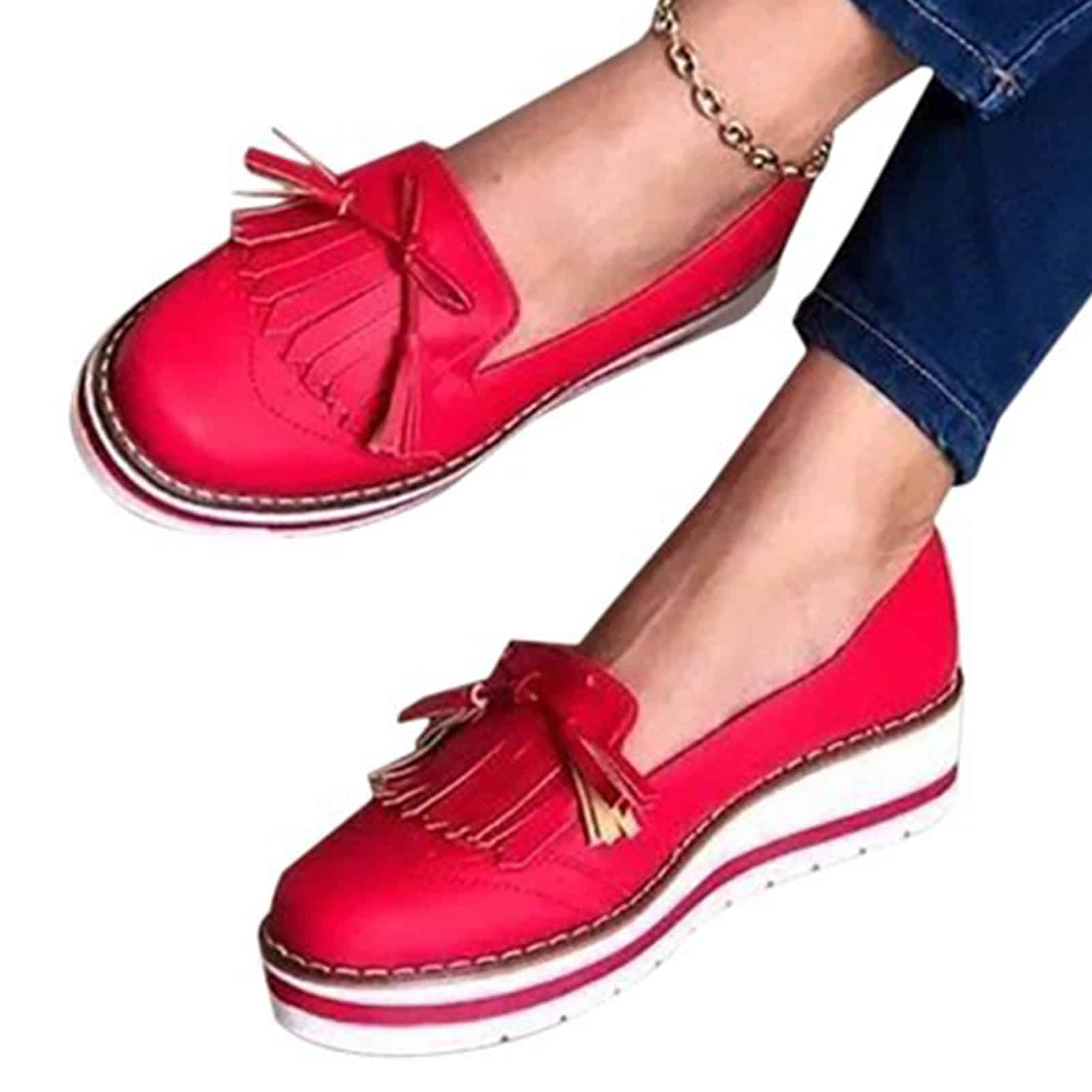 Ces mocassins pour femme à talons compensés allient élegance et confort. Ils se distinguent par leur design tendance agrémenté de franges et d’un nœud décoratif, leur conférant une touche unique. Fabriqués à partir de matériaux légers et robustes, ces mocassins peuvent être portés toute la journée sans éprouver de fatigue. Idéales pour une soirée chic ou une virée décontractée, ces chaussures seront le complément parfait à votre collection.