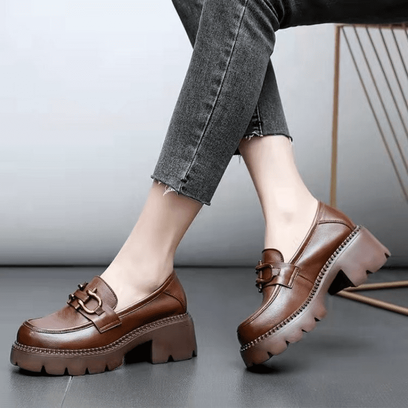 Mocassins à talons en cuir style rétro pour femmes