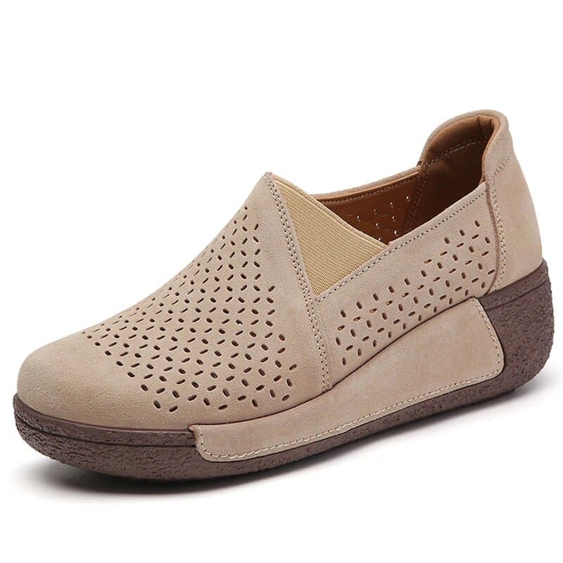Mocassins ajourés confortables à semelle compensée pour femme
