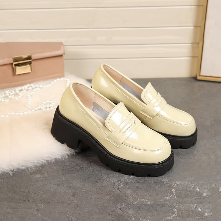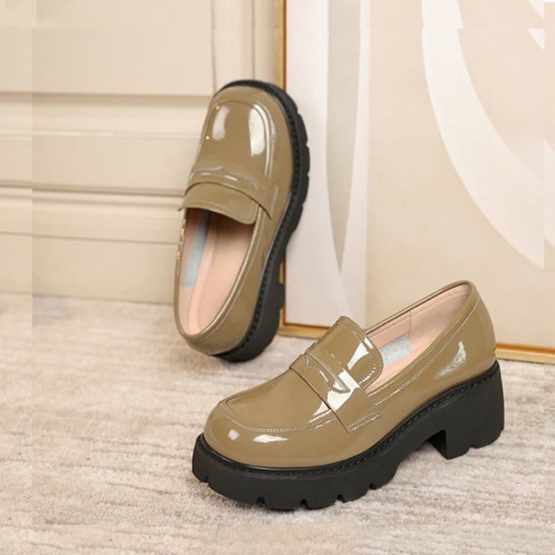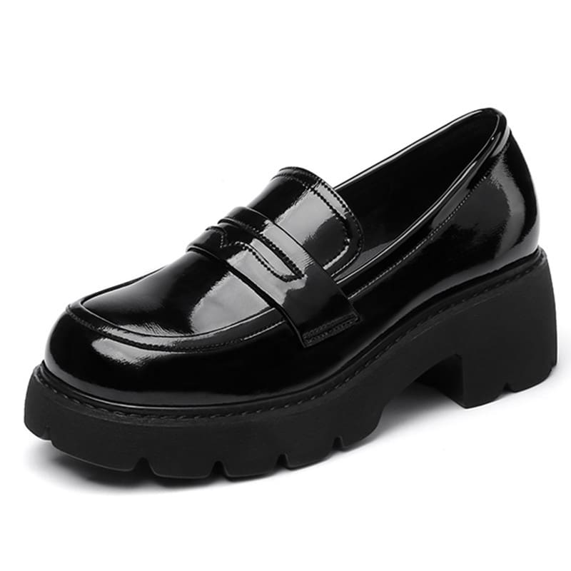 Ces mocassins vernis à semelle épaisse sont une véritable option incontournable. Réalisés à partir de cuir synthétique haut de gamme, ils procurent un aspect sophistiqué et luxueux à votre garde-robe, que ce soit pour un style formel ou décontracté.