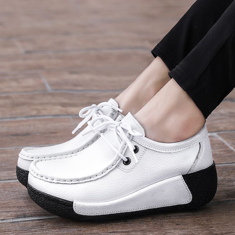 Les mocassins bateau à plateforme pour femme avec lacets représentent l’équilibre idéal entre le confort utilitaire et le style décontracté. La semelle intérieure matelassée assure un confort optimal, tandis que la semelle extérieure en caoutchouc durable procure une excellente adhérence sur diverses surfaces.