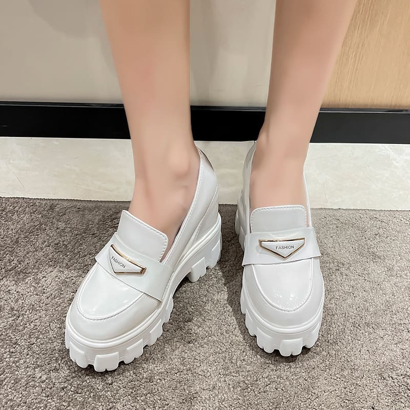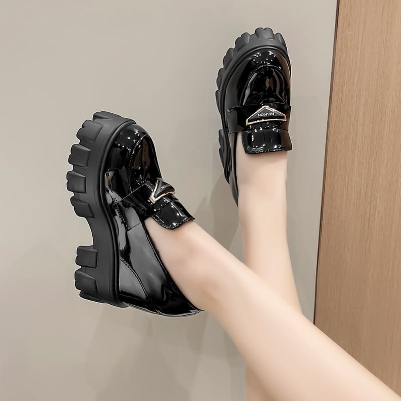 Mocassins compensés en cuir brillant pour femmes