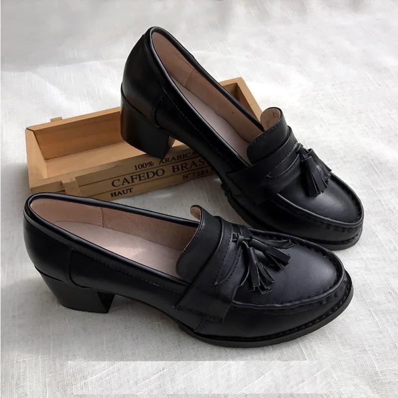 Ces superbes mocassins à talons intermédiaires en cuir pour femmes sont l’accessoire de mode idéal pour toutes les situations. Ces chaussures raffinées combinent style et aisance, avec leur talon mi-haut de 5 cm (environ deux pouces) et leur forme classique en cuir souple. Elles disposent d’une semelle intérieure rembourrée assurant un soutien supplémentaire et personnalisé aux pieds toute la journée.