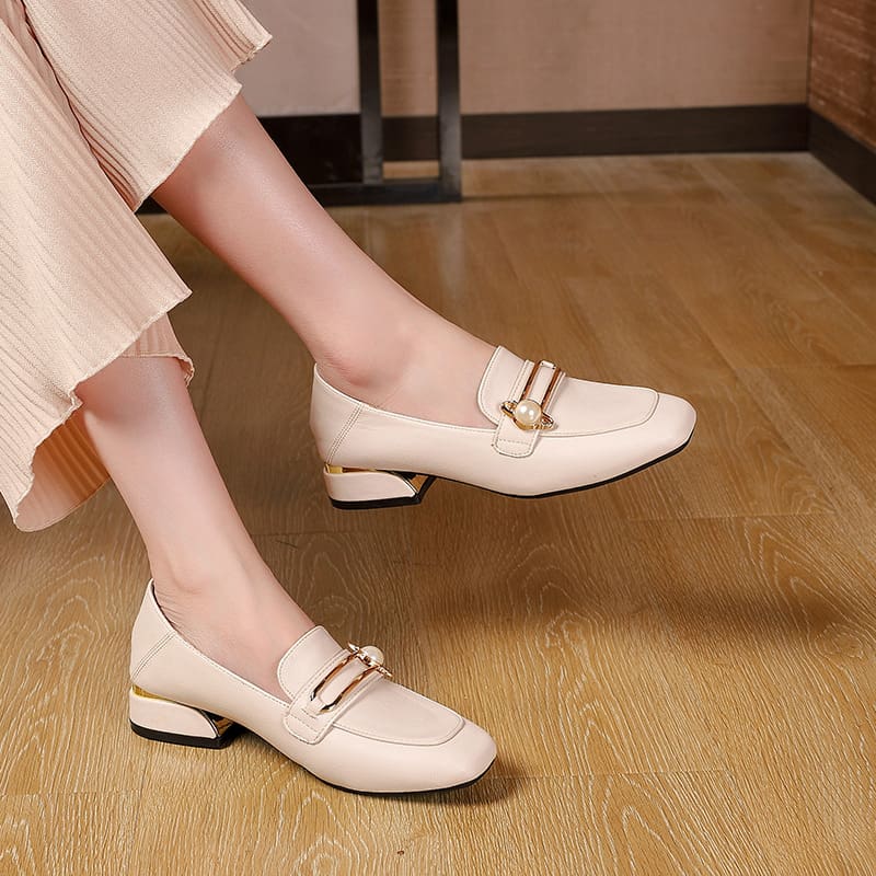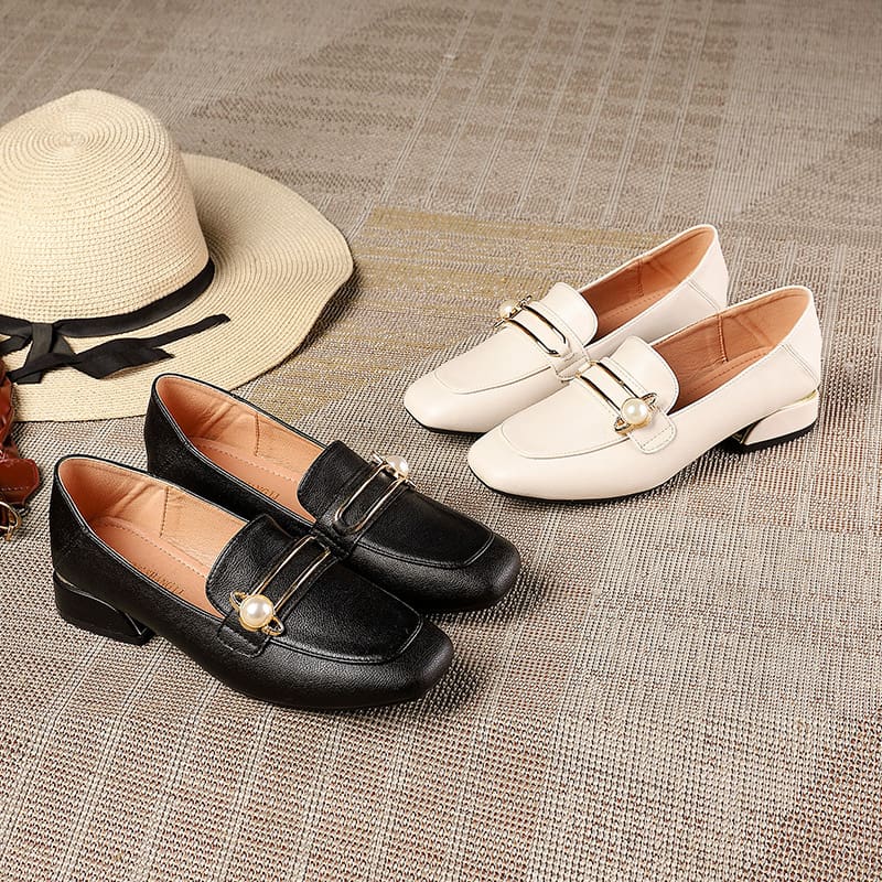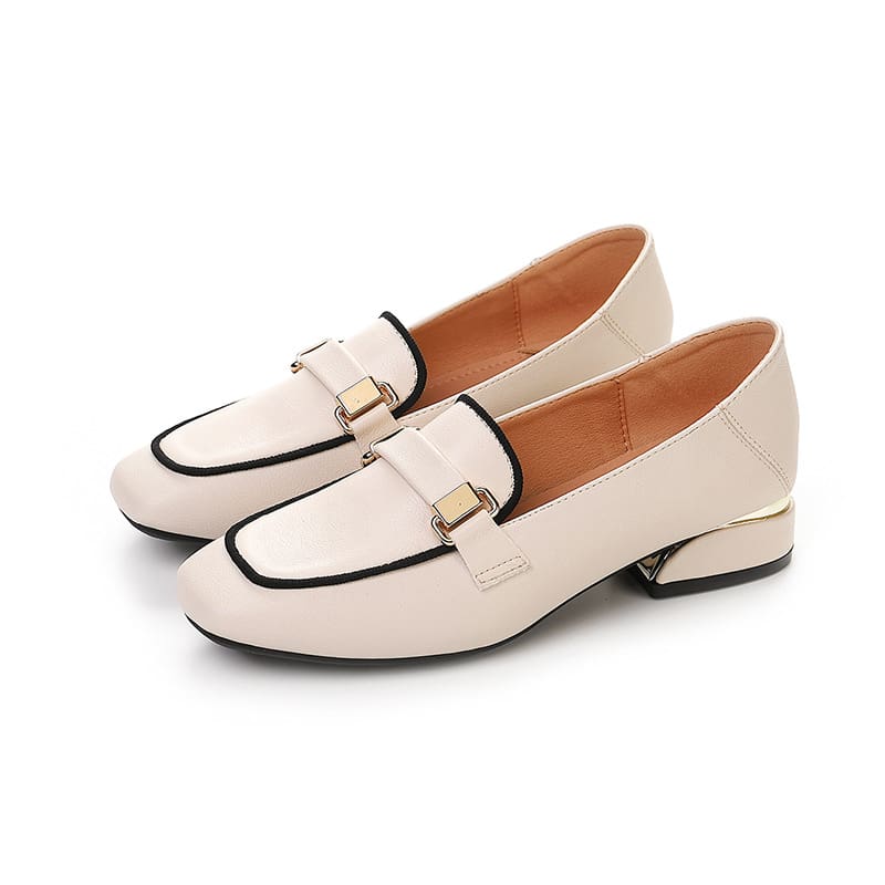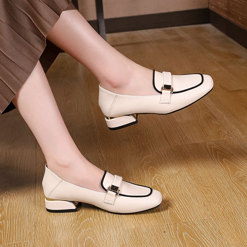 Mocassins en cuir à talons épais et carré pour femmes