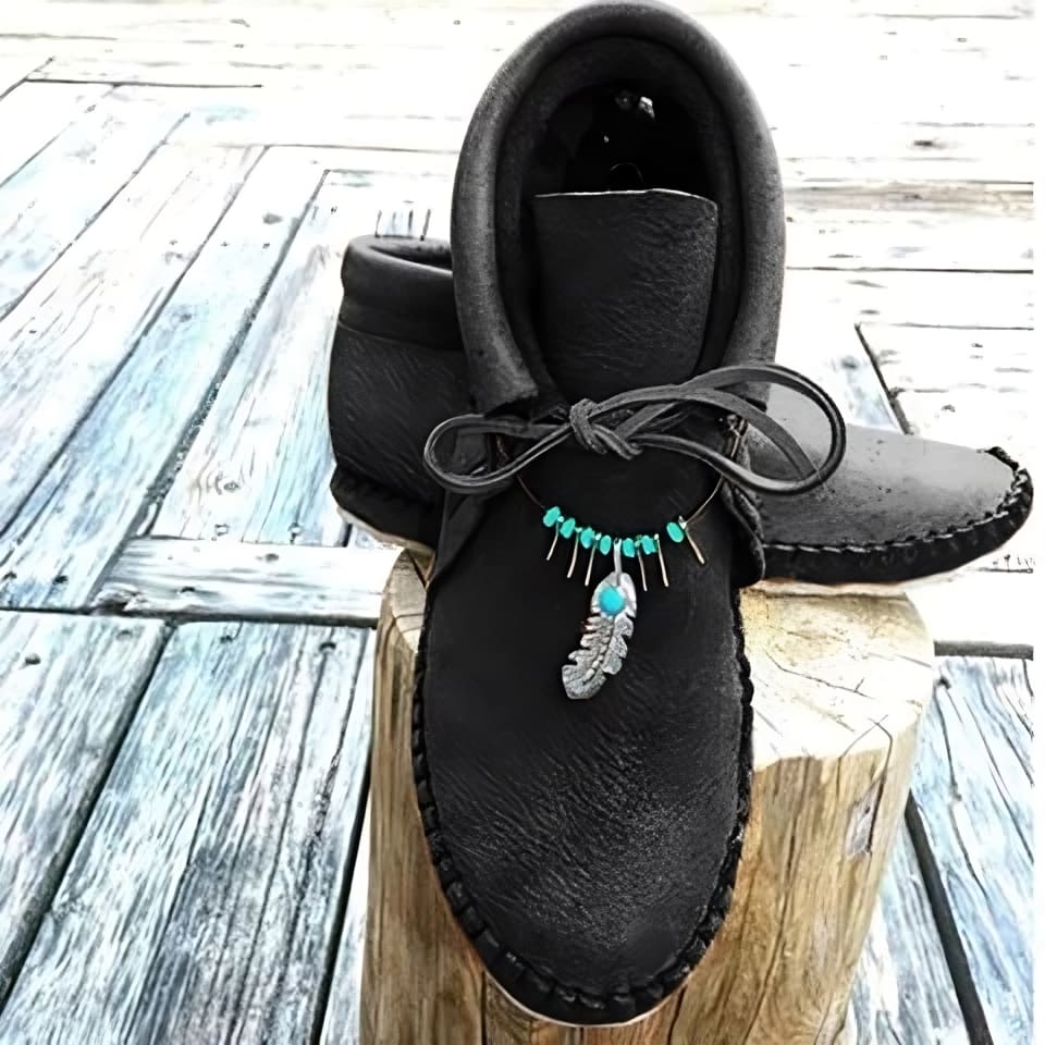 Ces botte mocassins indiens ornés de plumes possèdent un charme ethnique distinct. Extrêmement confortables grâce à leurs semelles souples, ces mocassins compléteront parfaitement un look soigné et stylé, en toute occasion et pour chaque saison. Proposés en 5 coloris pour s’adapter à votre garde-robe.