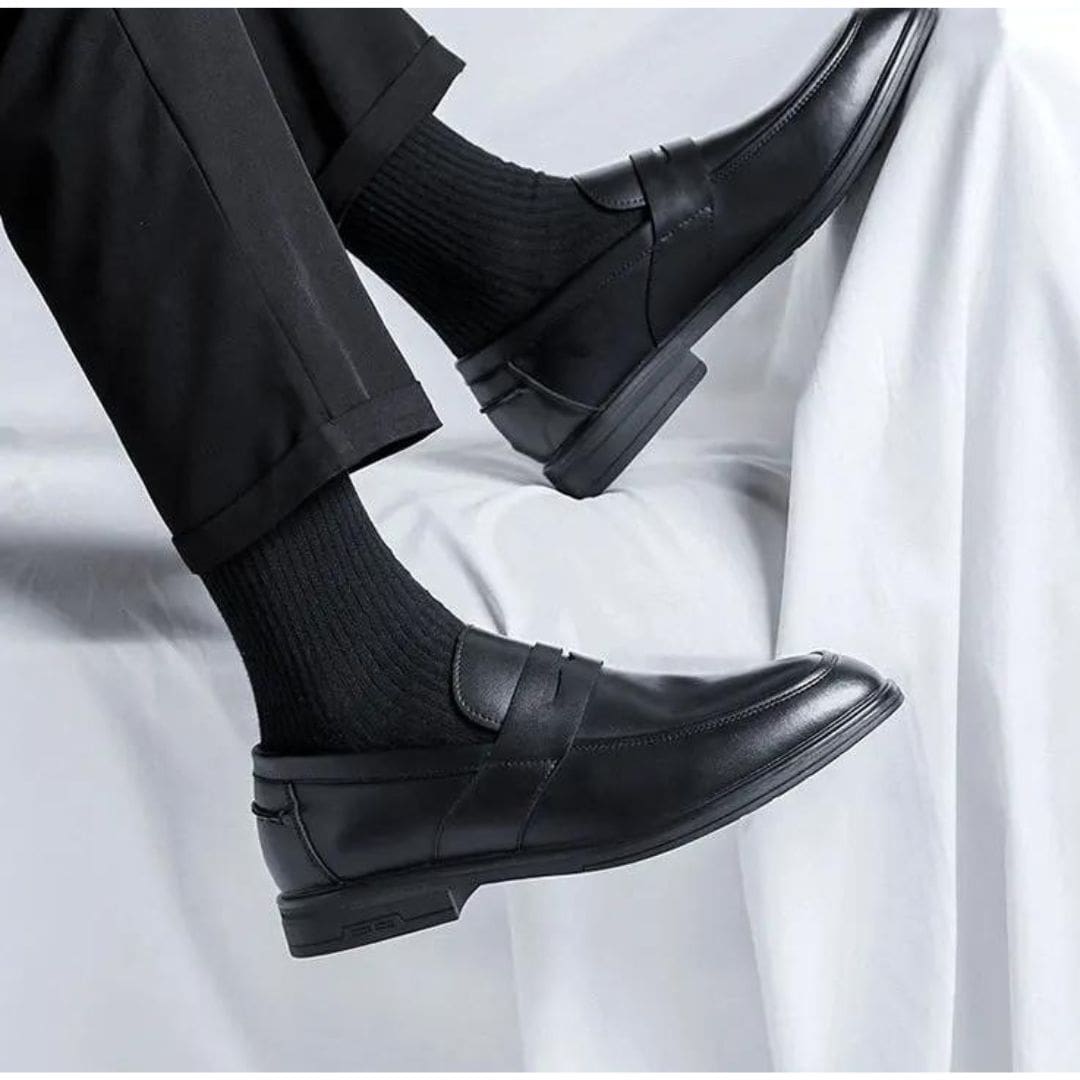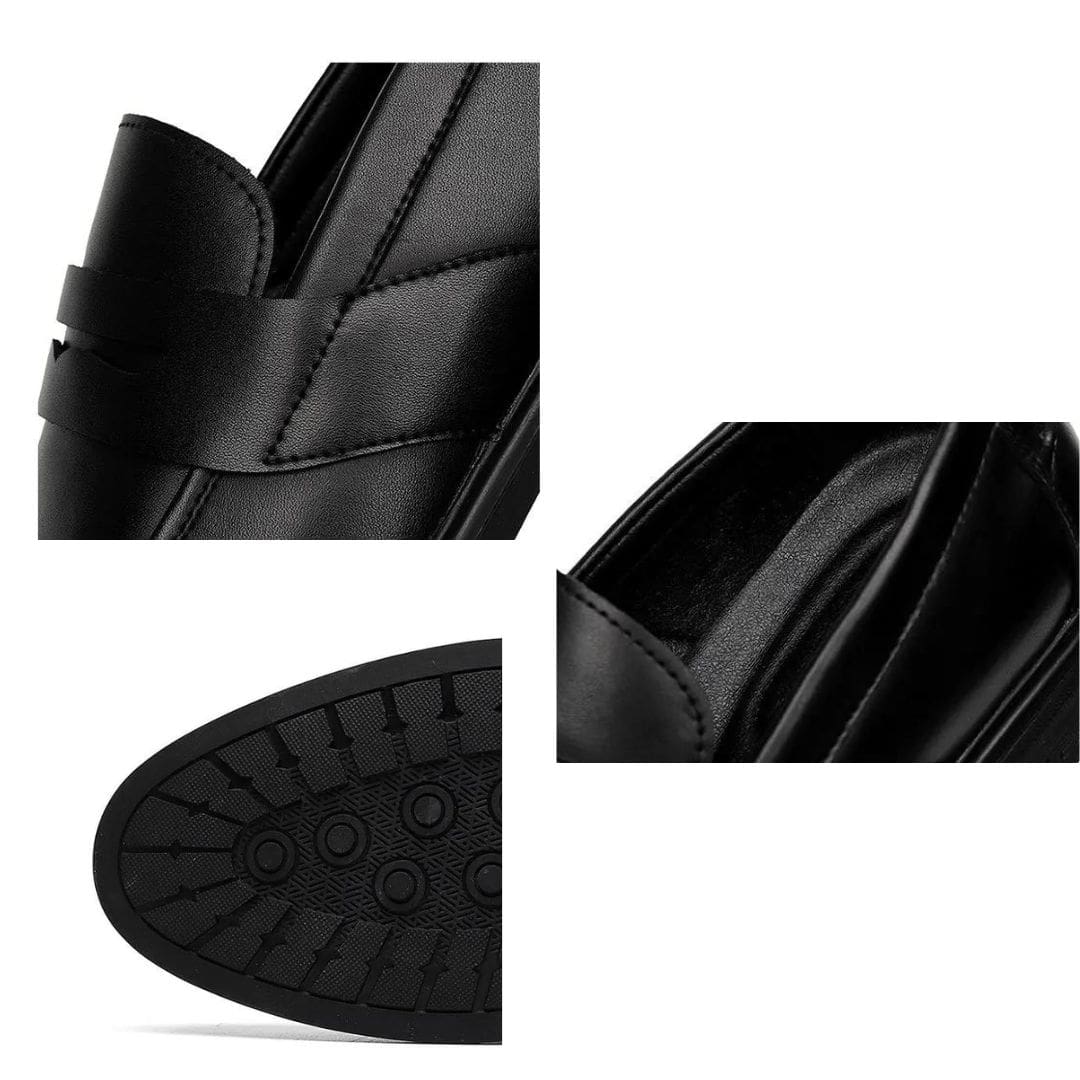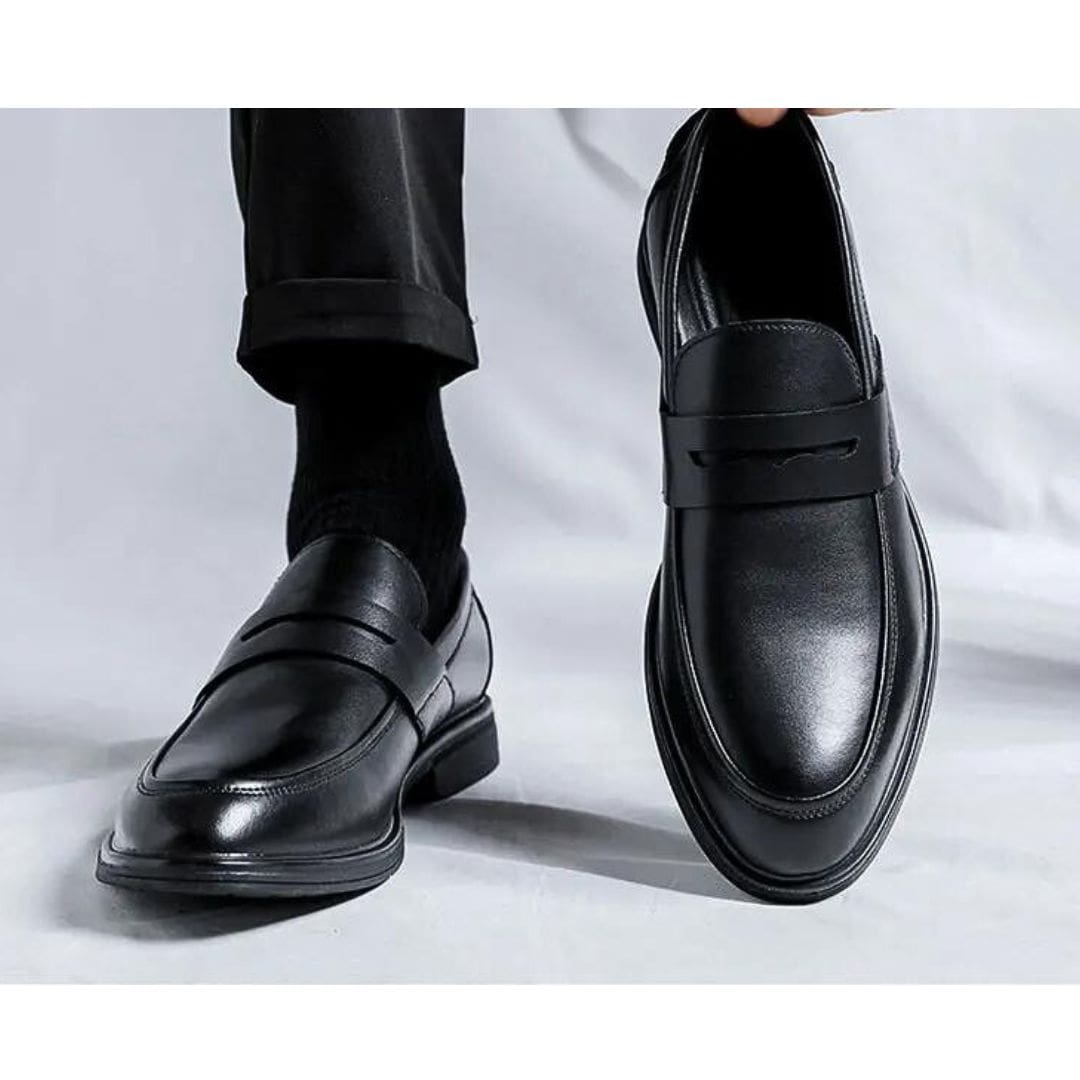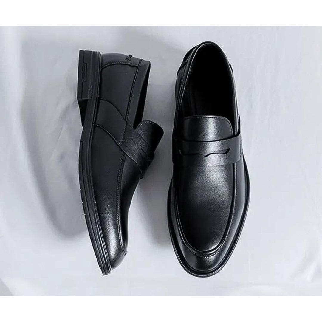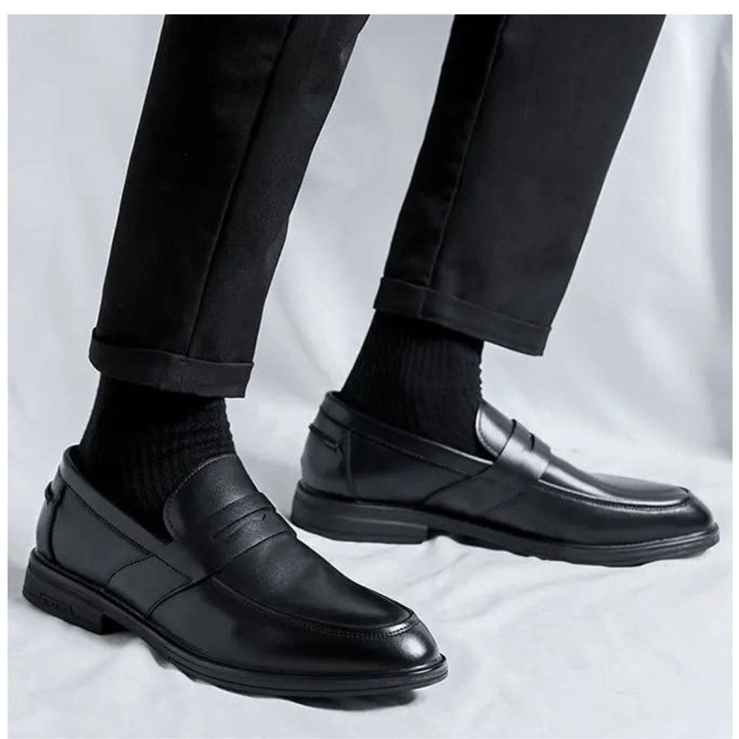 Exprimez votre élégance avec notre collection de mocassins classiques noirs en simili cuir pour homme. Élaborés avec une attention minutieuse, ces mocassins présentent une forme épurée et intemporelle, convenant à toutes les circonstances. Idéals pour le bureau ou des événements formels, ils apportent une note de distinction à votre style.