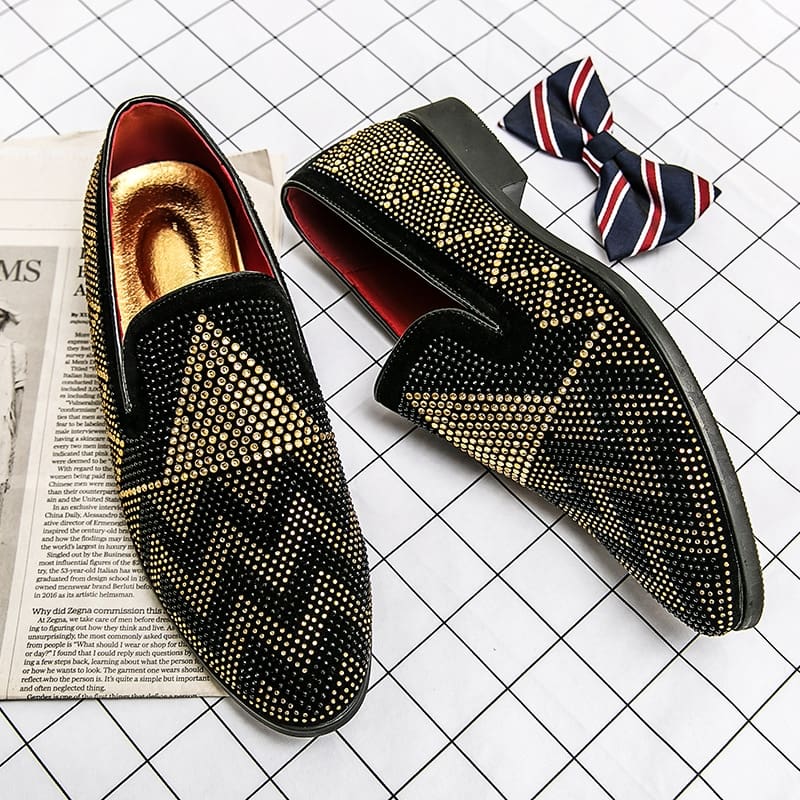 Mocassins Mocassin noirs en strass Mocassin dorés pour hommes
