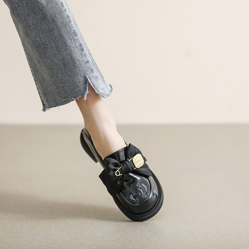 Mocassins Mocassin noirs style britannique avec un nœud de papillon pour femmes