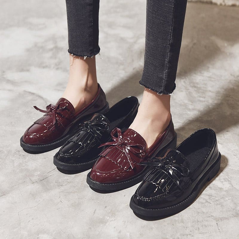 Ces chaussures en cuir verni avec des franges pour femme constituent une pièce chic et stylée pour n’importe quelle tenue. Leur finition brillante et les franges à l’avant apportent une note sophistiquée. Idéales pour les moments décontractés tels que les week-ends ou les sorties entre amis. Portez-les encore et encore !