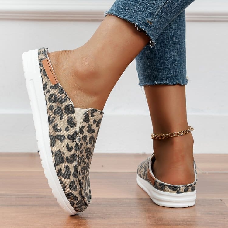 Mocassins mules sport en toile Mocassin leopard avec semelle épaisse