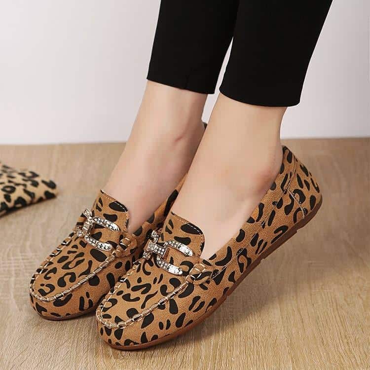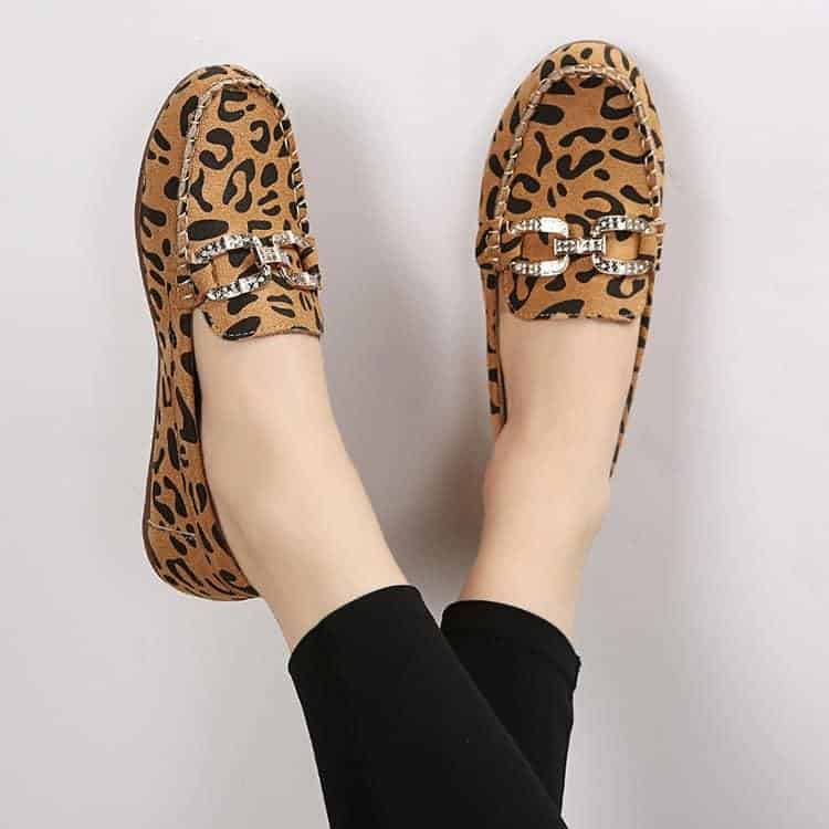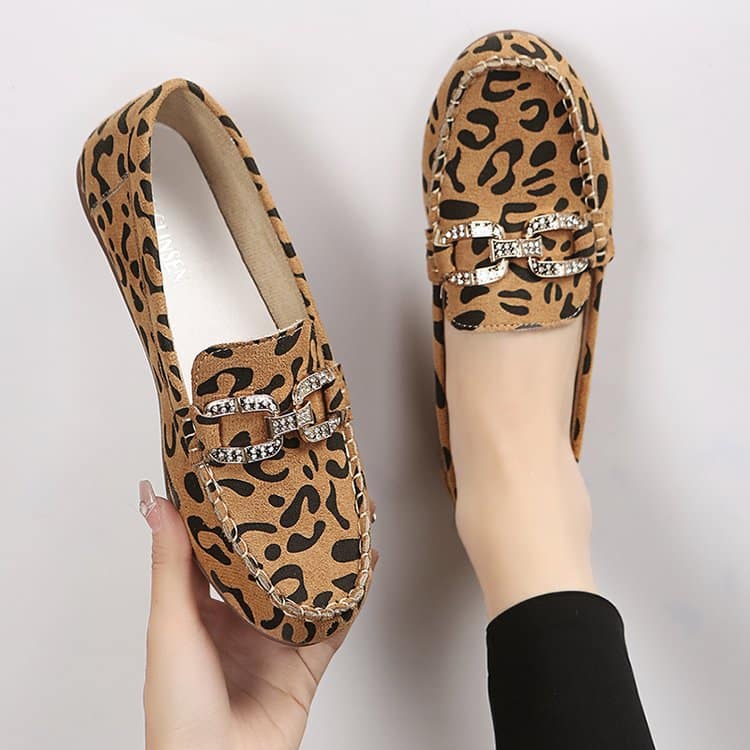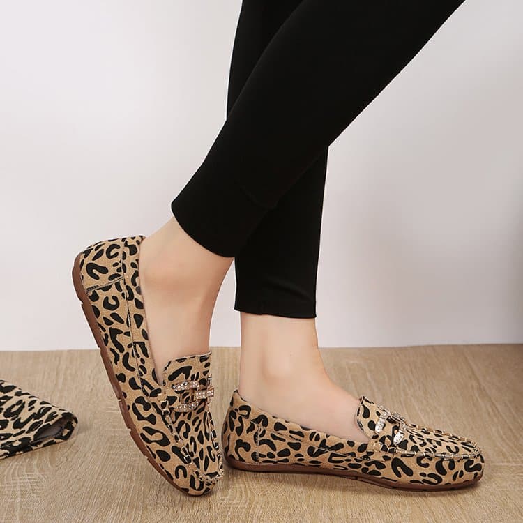 Mocassins souples imprimé Mocassin leopard avec anneaux en strass